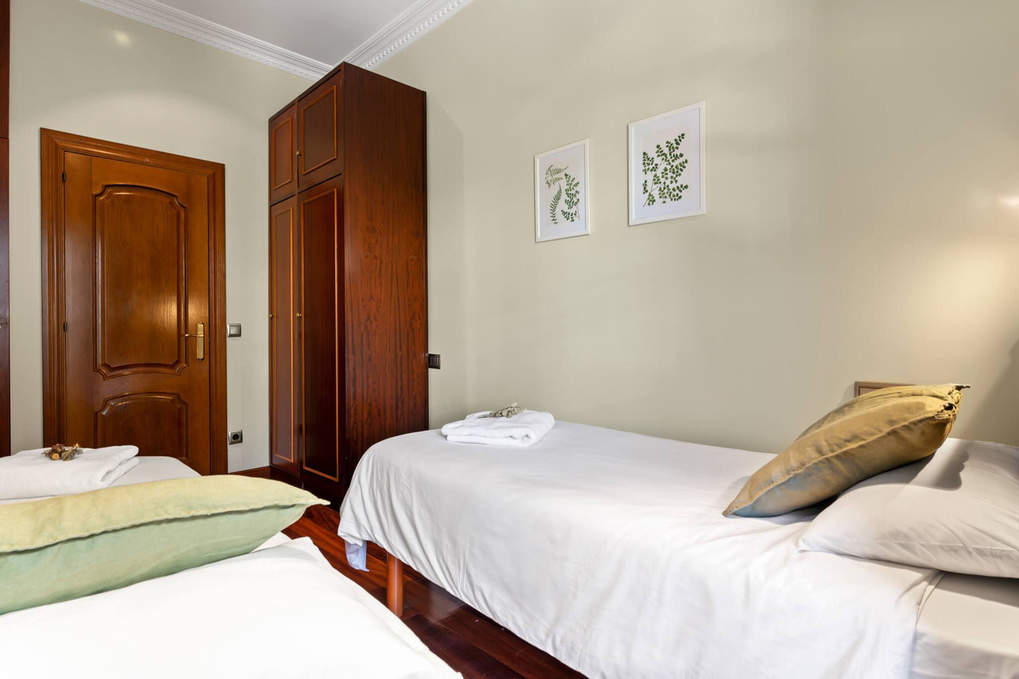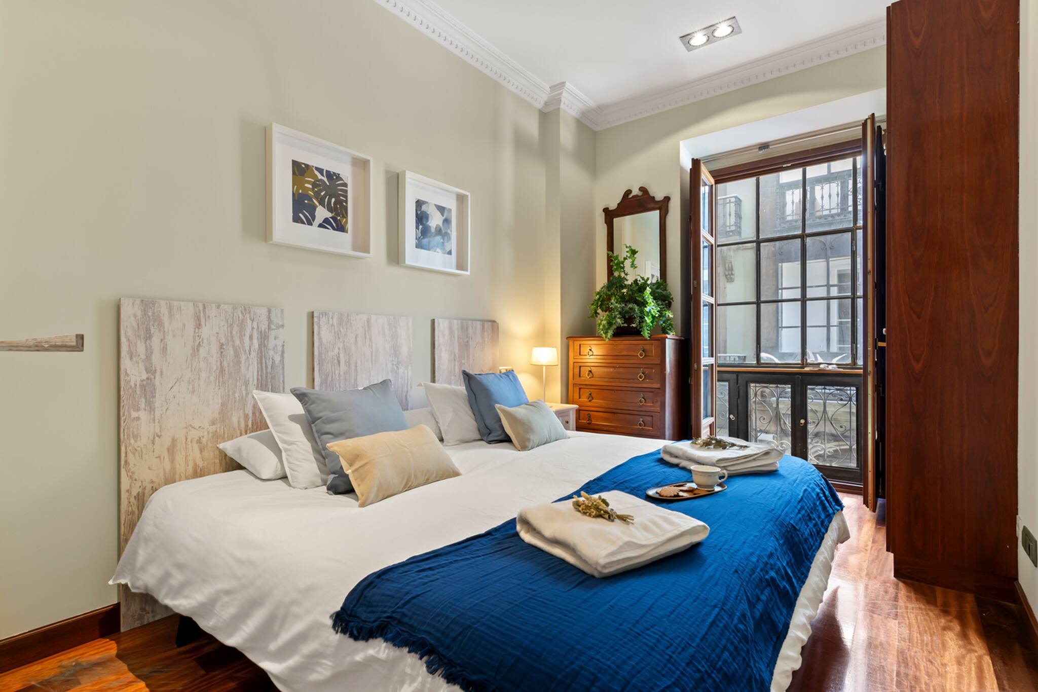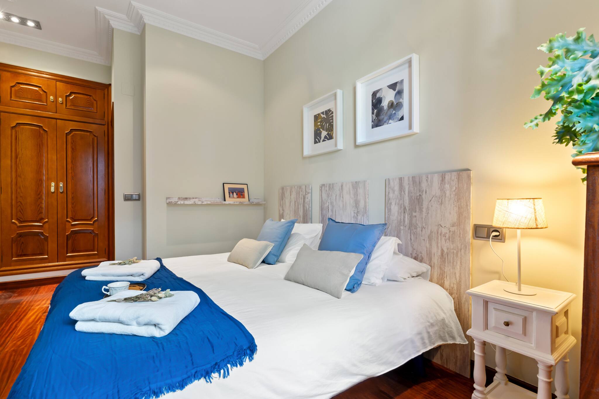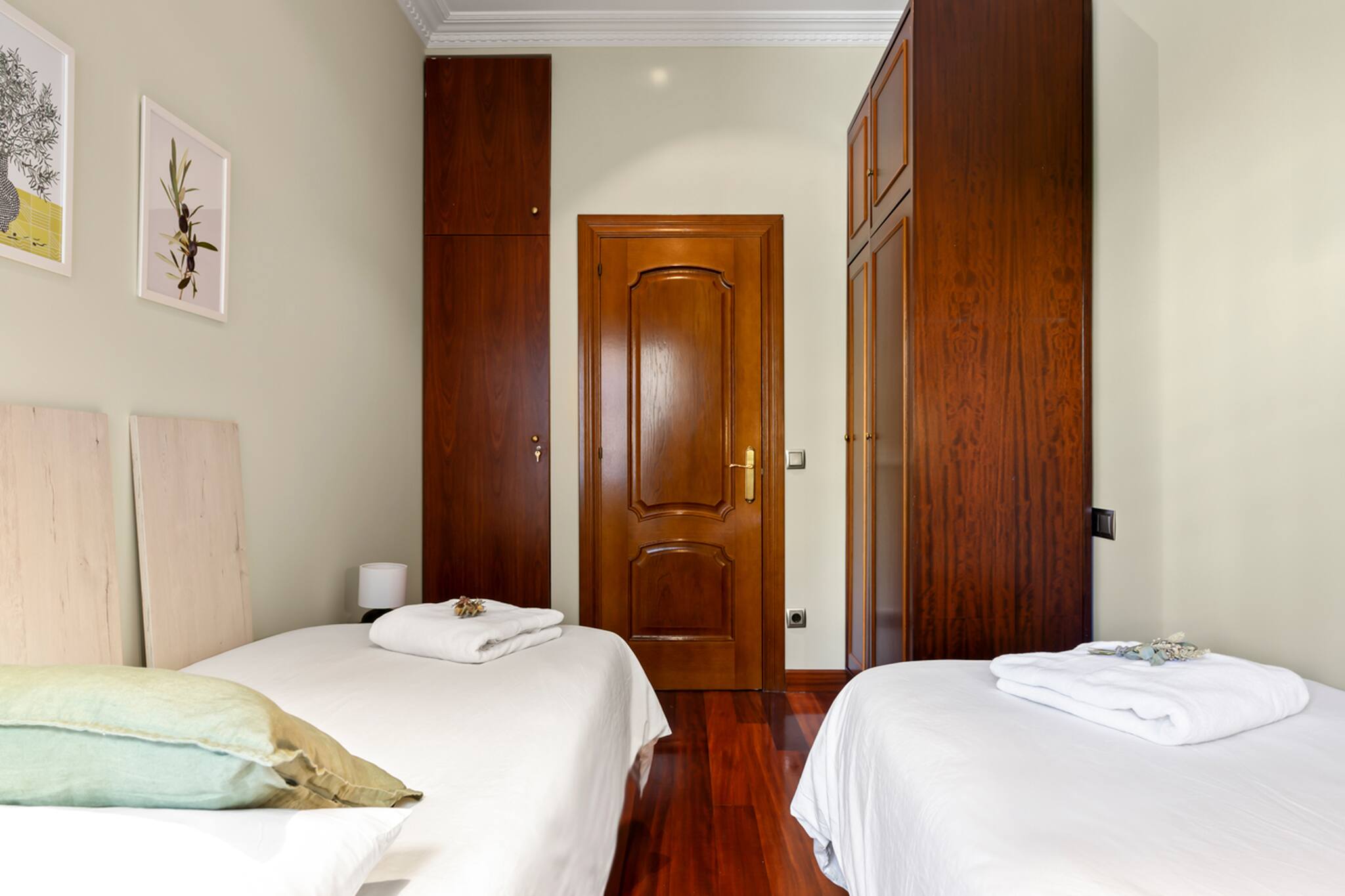 Apartamento grande y espacioso, con dos dormitorios con cama matrimonial y una habitación con despacho ideal para trabajar.