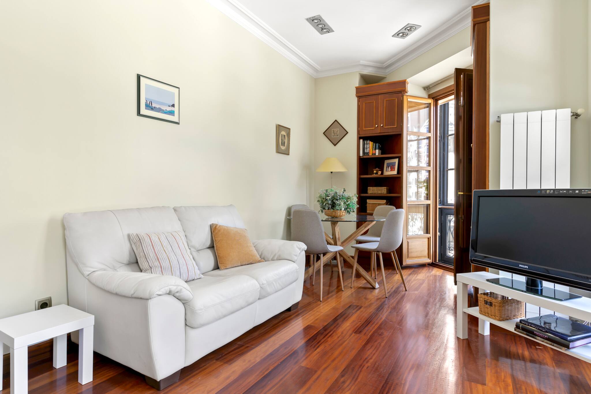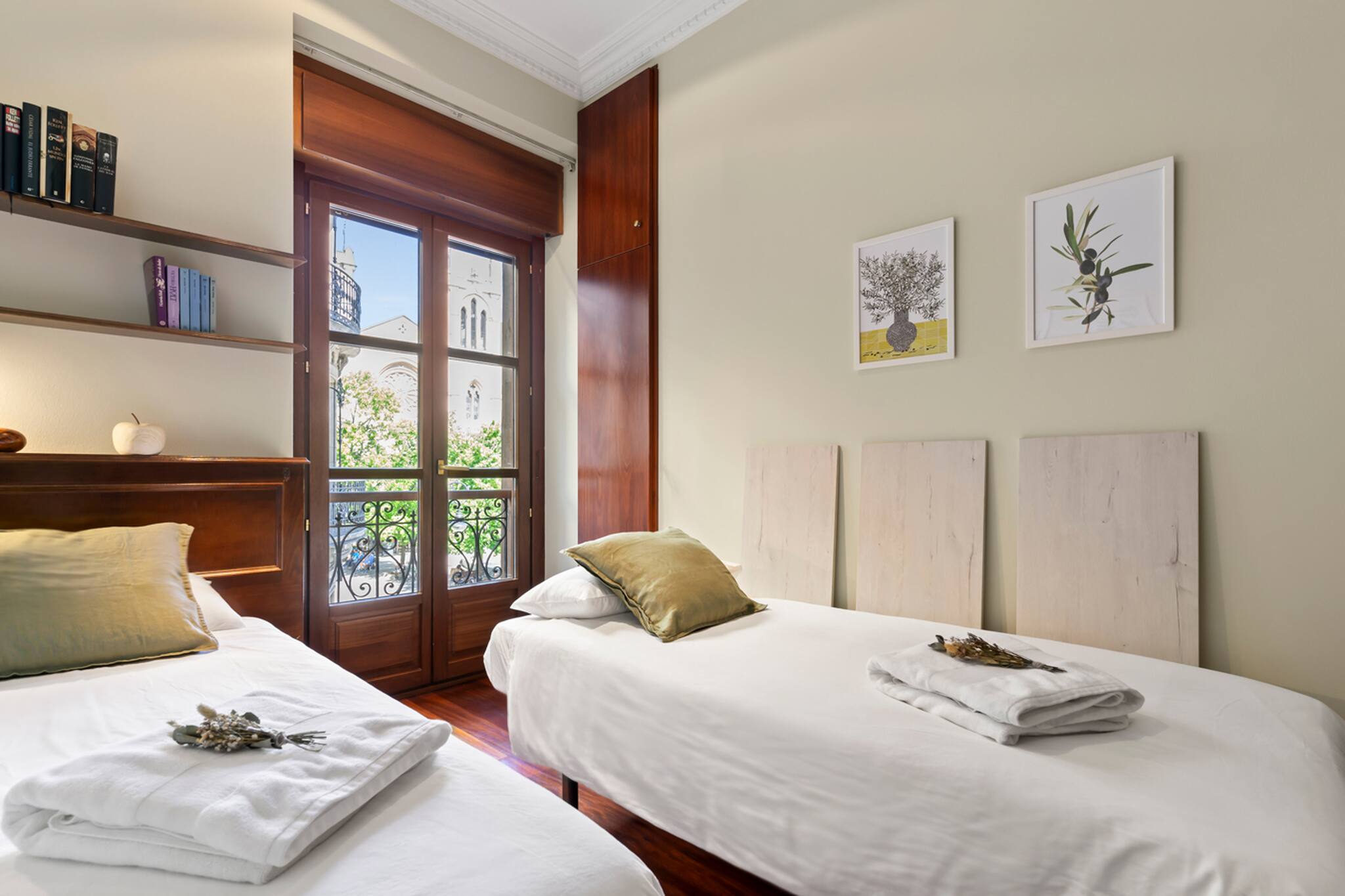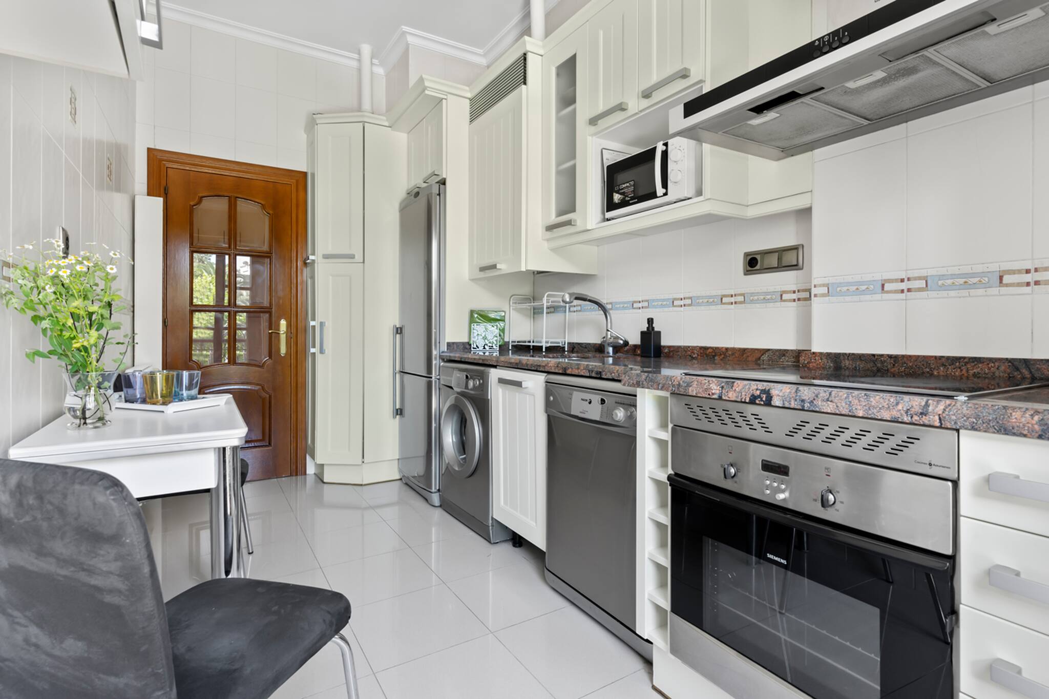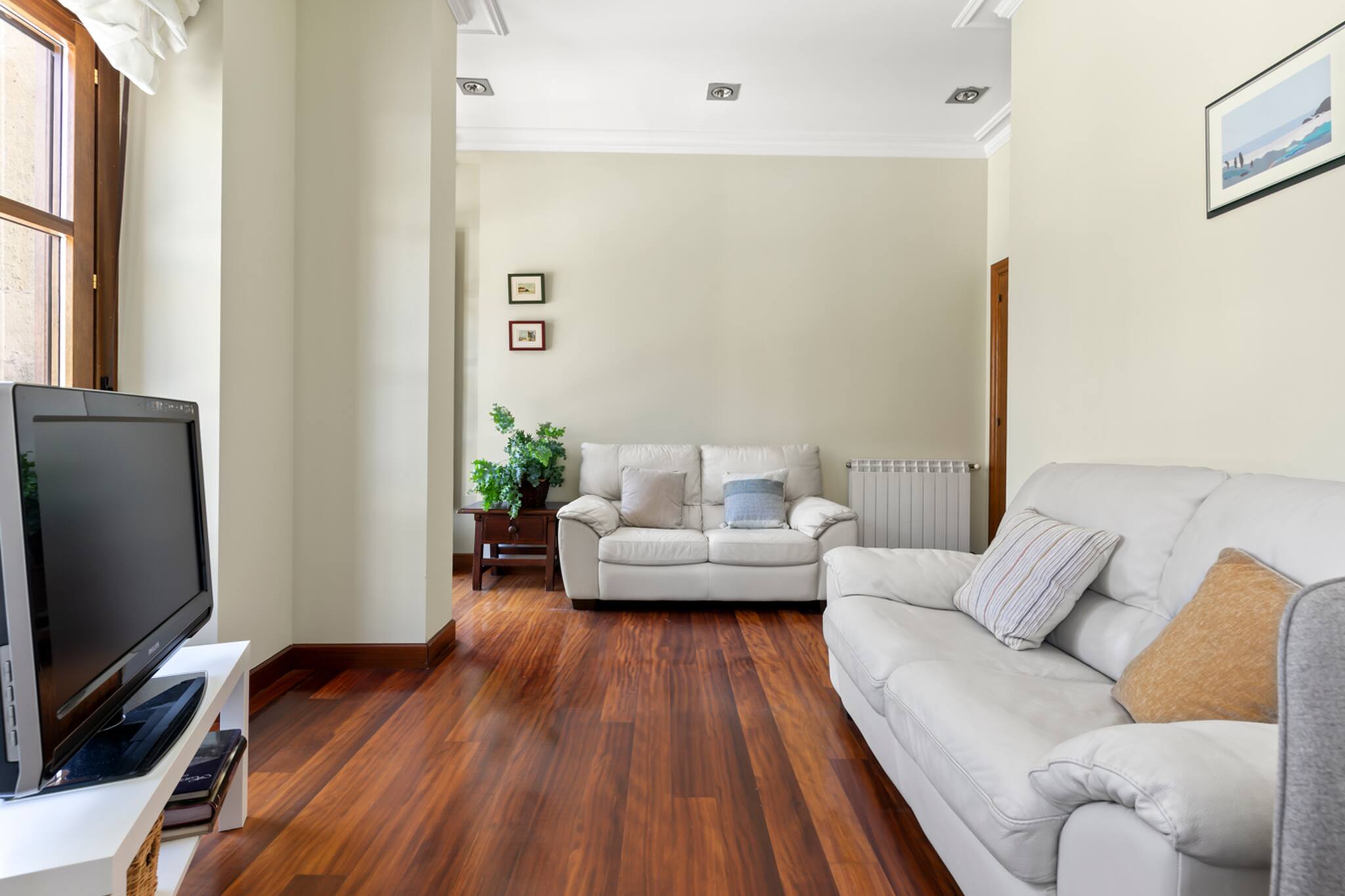 Apartamento grande y espacioso, con dos dormitorios con cama matrimonial y una habitación con despacho ideal para trabajar.