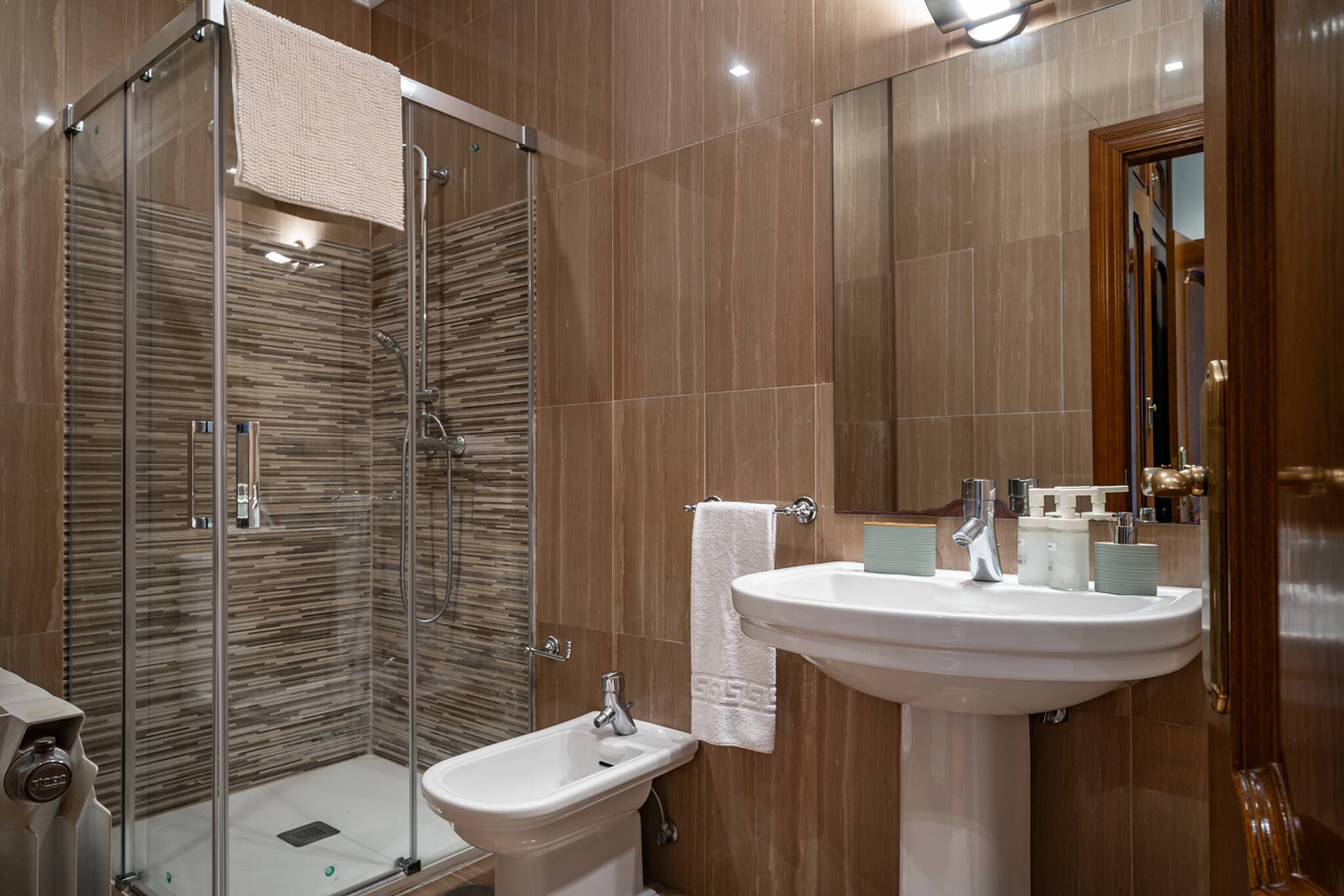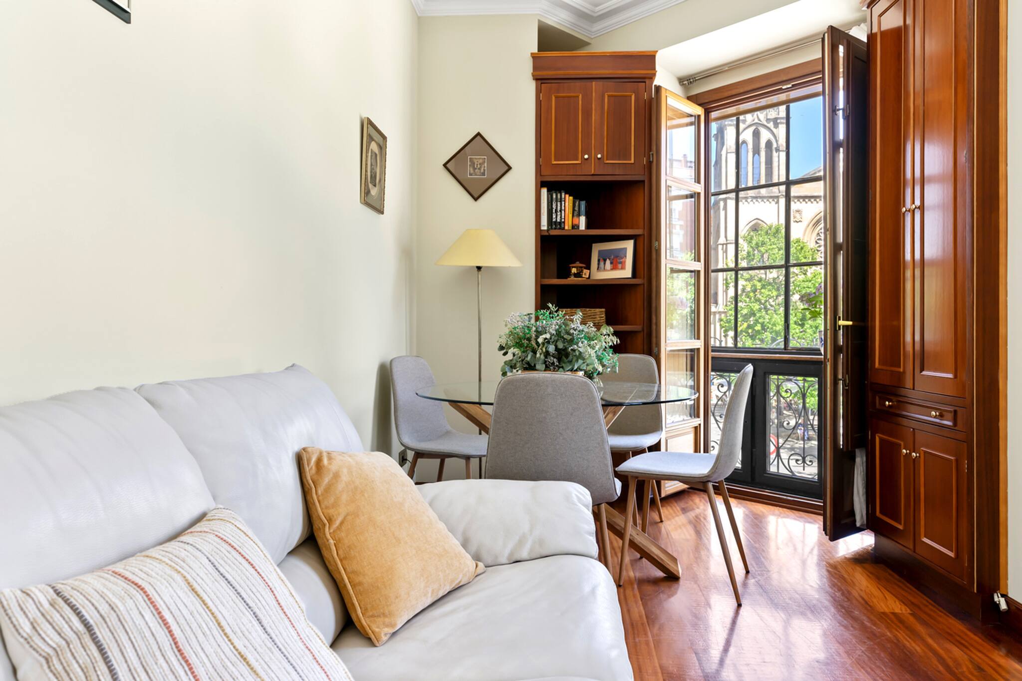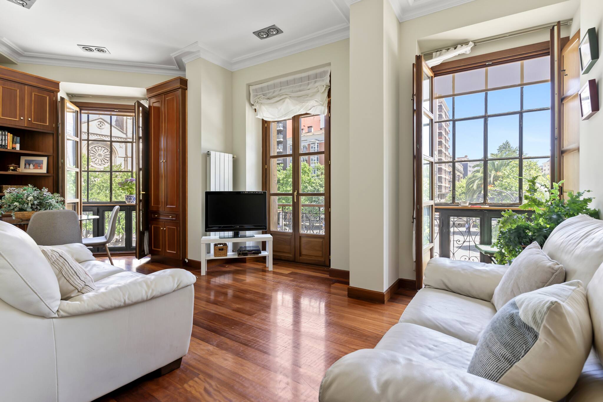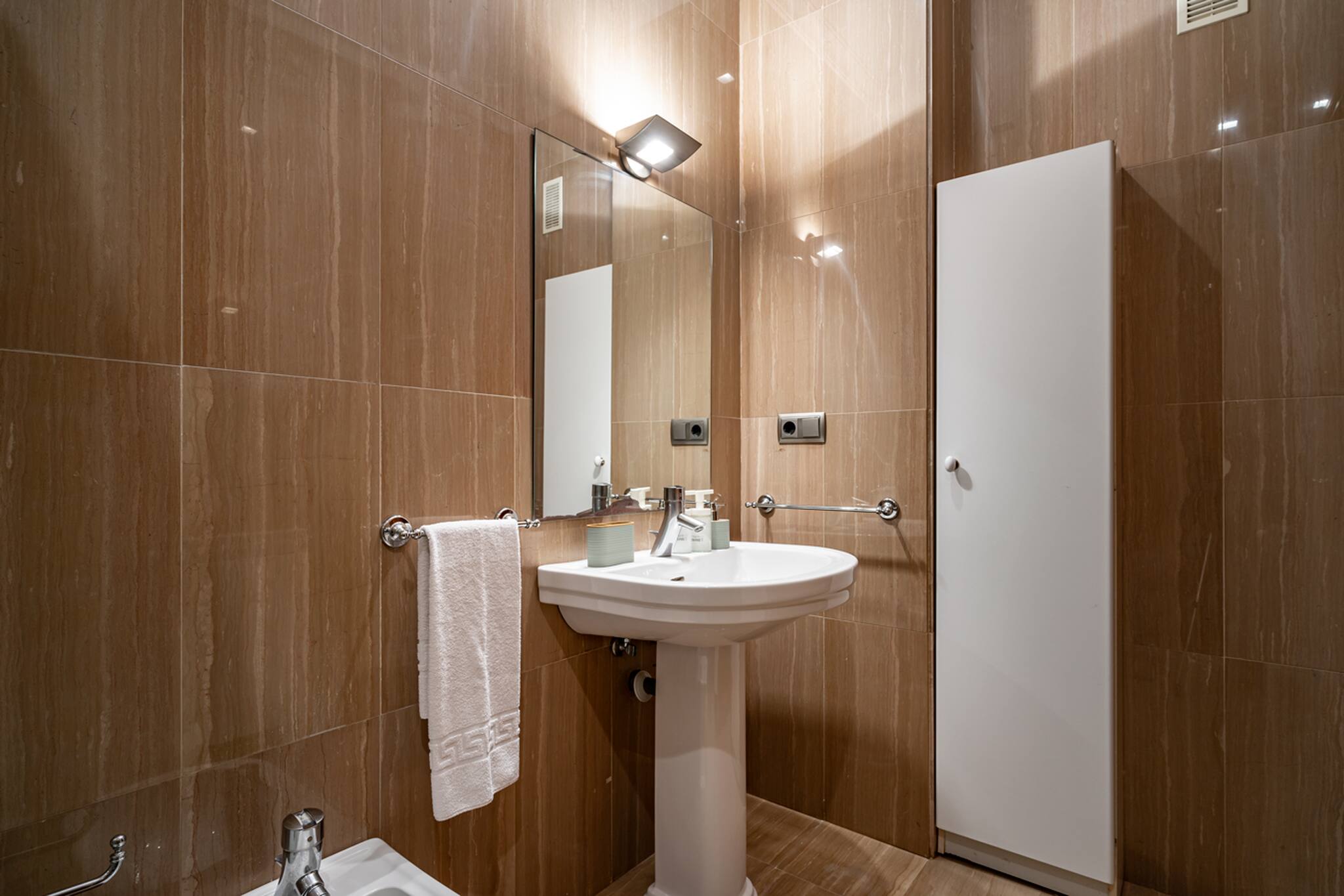 Apartamento grande y espacioso, con dos dormitorios con cama matrimonial y una habitación con despacho ideal para trabajar.