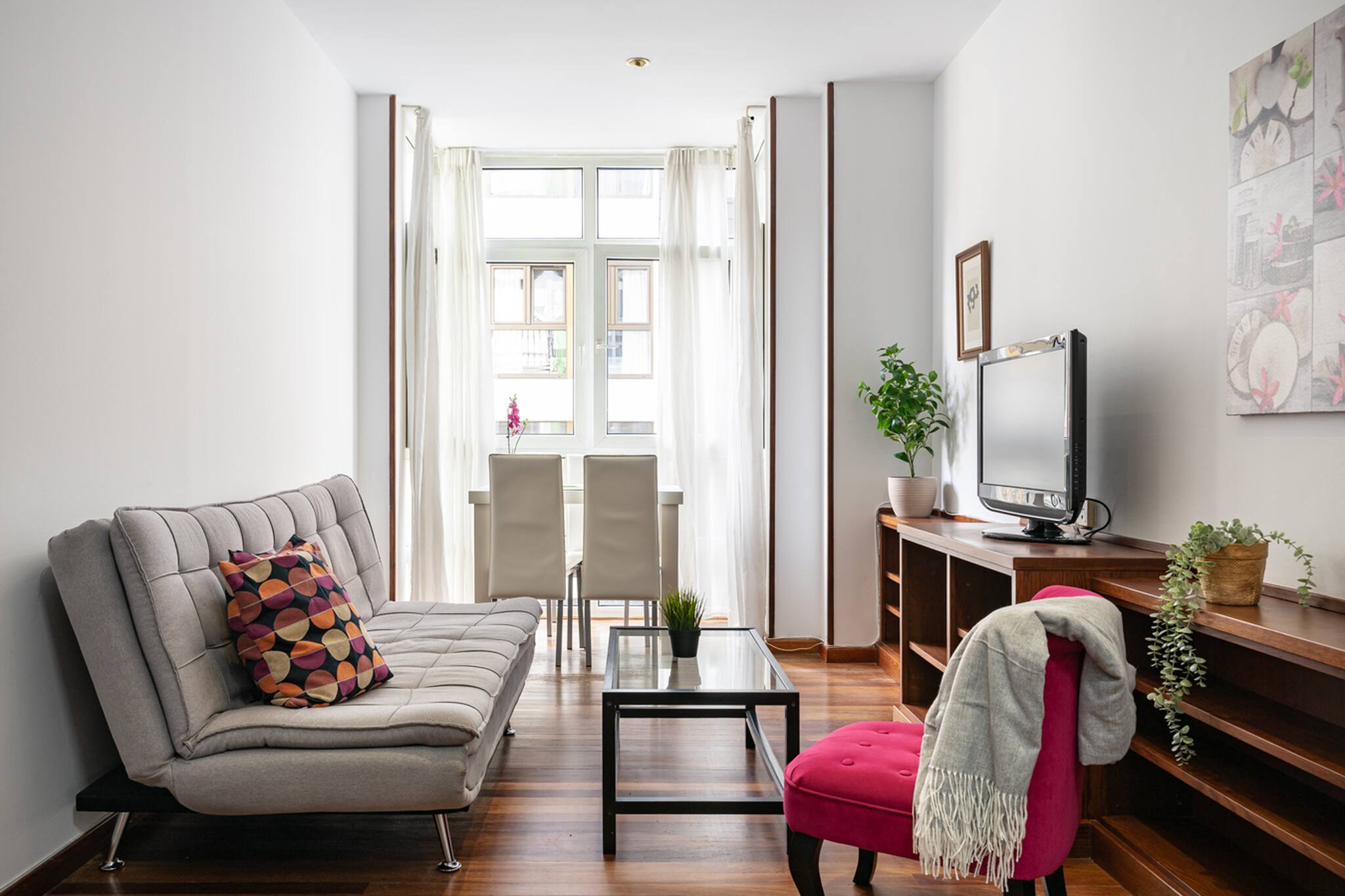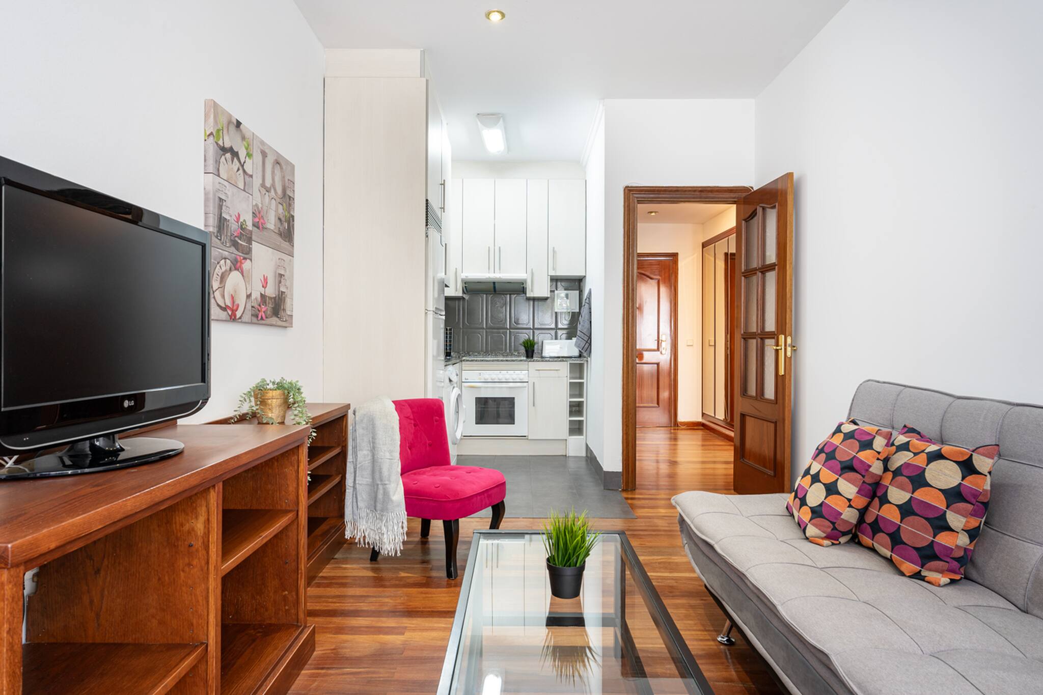 La opción perfecta para sentirte como en casa durante tu estancia. Cuenta con un dormitorio con dos camas unidas para hacer una amplia cama de 1,80 para favorecer el descanso y el confort. Salón - cocina totalmente equipada con menaje, cafetera de cápsulas... baño con plato de ducha, WIFI y parking en el mismo edificio.