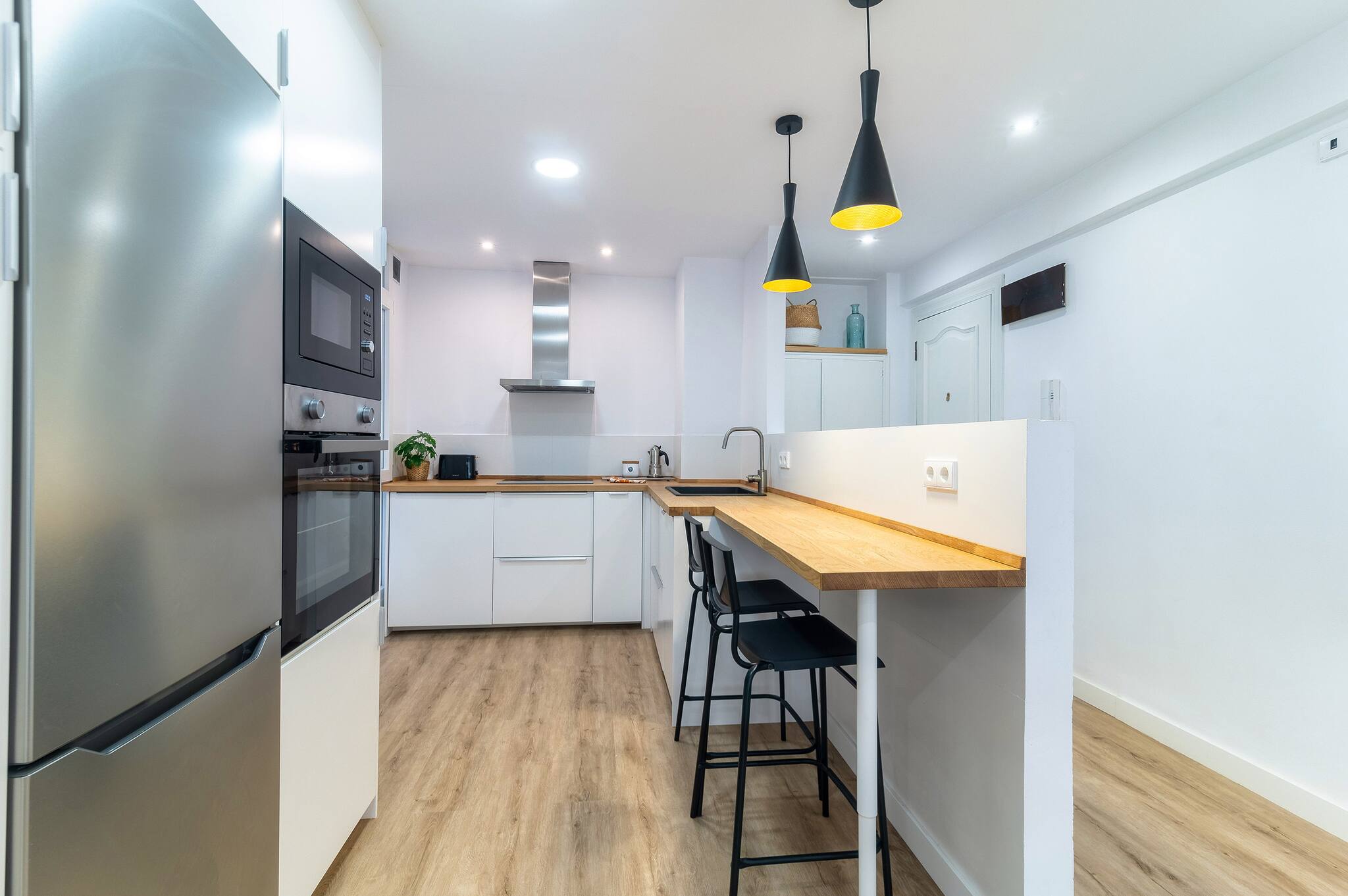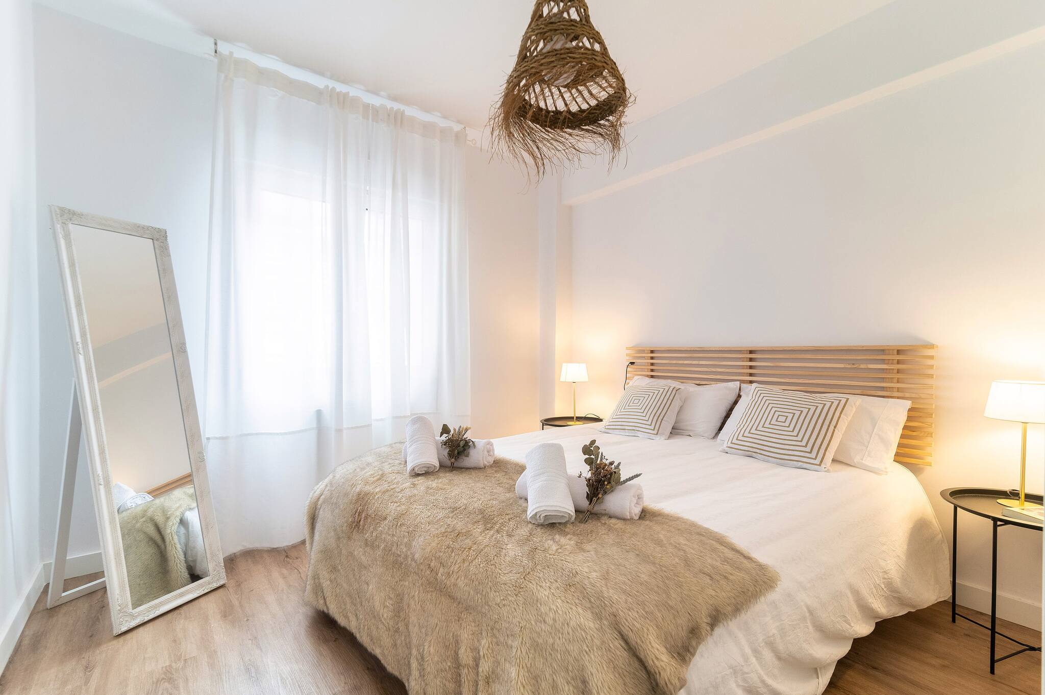 Apartamento grande y espacioso, con dos dormitorios con cama matrimonial y una habitación con despacho ideal para trabajar.