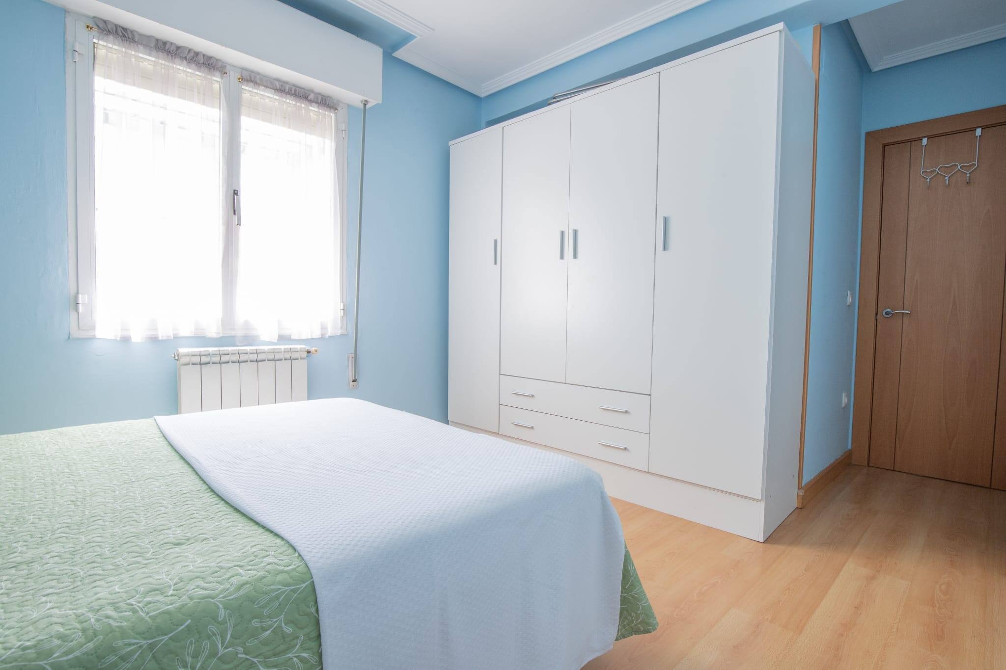 Apartamento grande y espacioso, con dos dormitorios con cama matrimonial y una habitación con despacho ideal para trabajar.