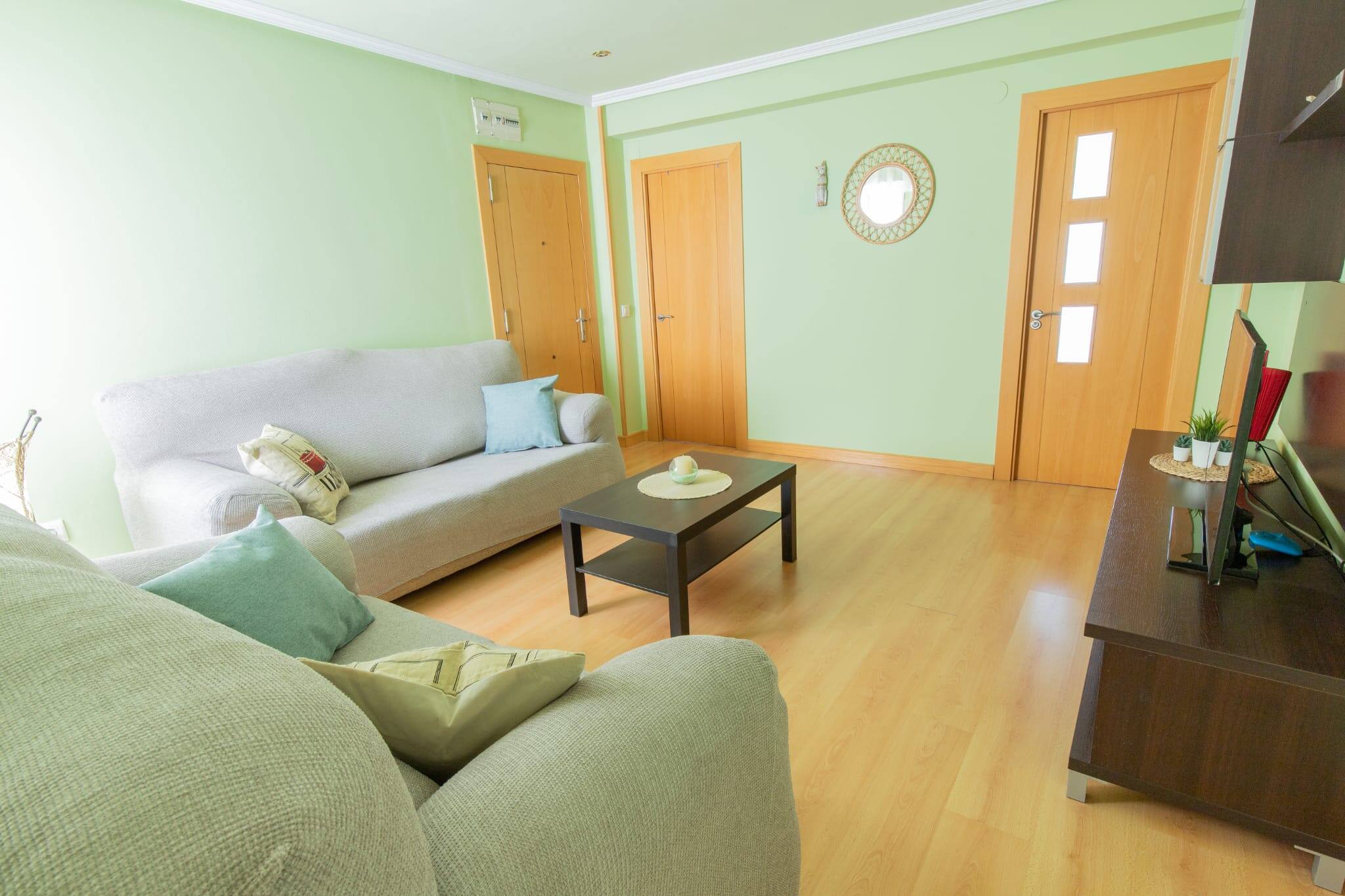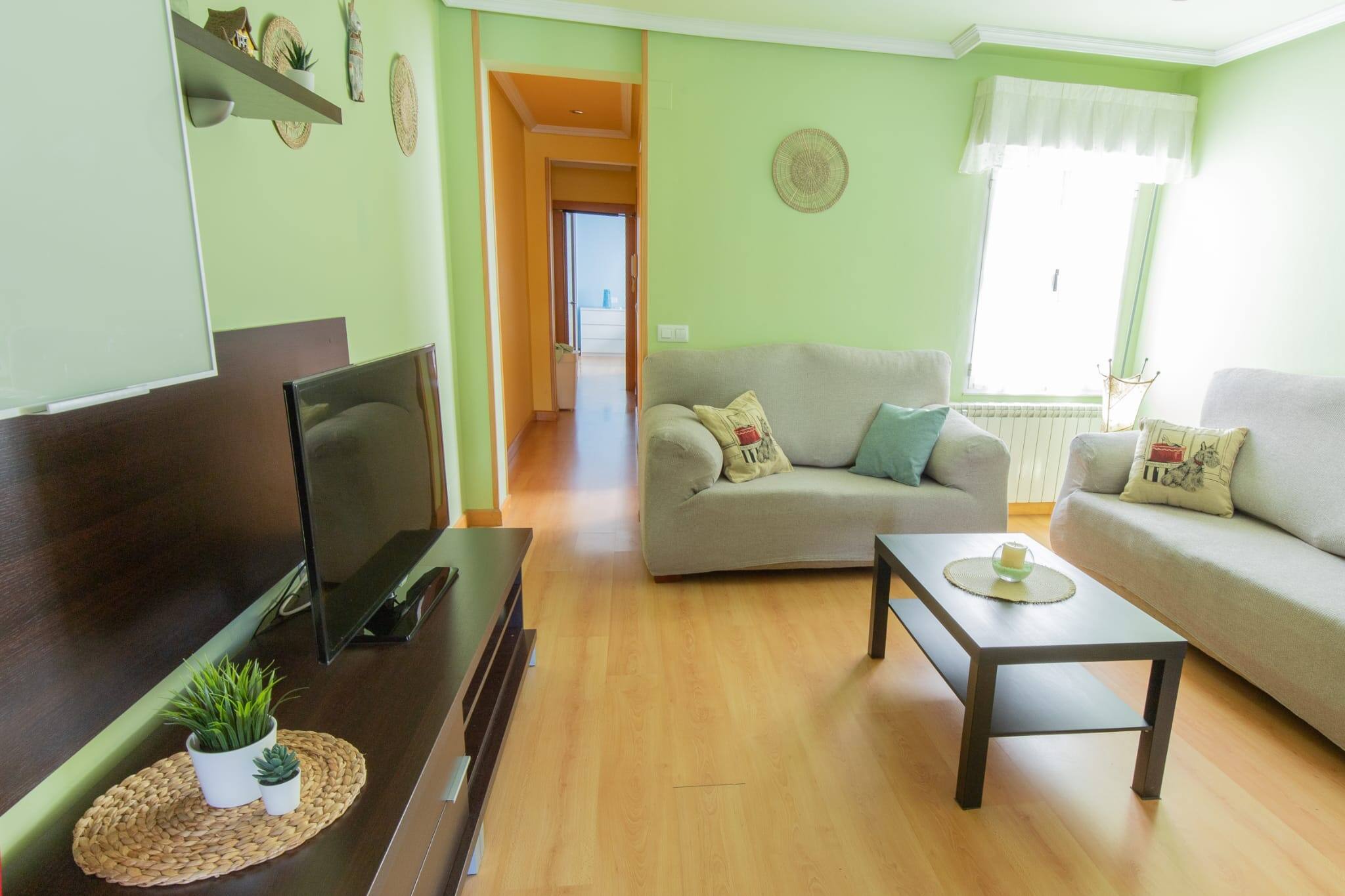 Apartamento Subráu; una opción perfecta para sentirte como en casa!! Alojamiento amplio y espacioso con 2 habitaciones con cama matrimonial, salón con dos sofás y TV de pantalla plana, cocina totalmente equipada y baño.