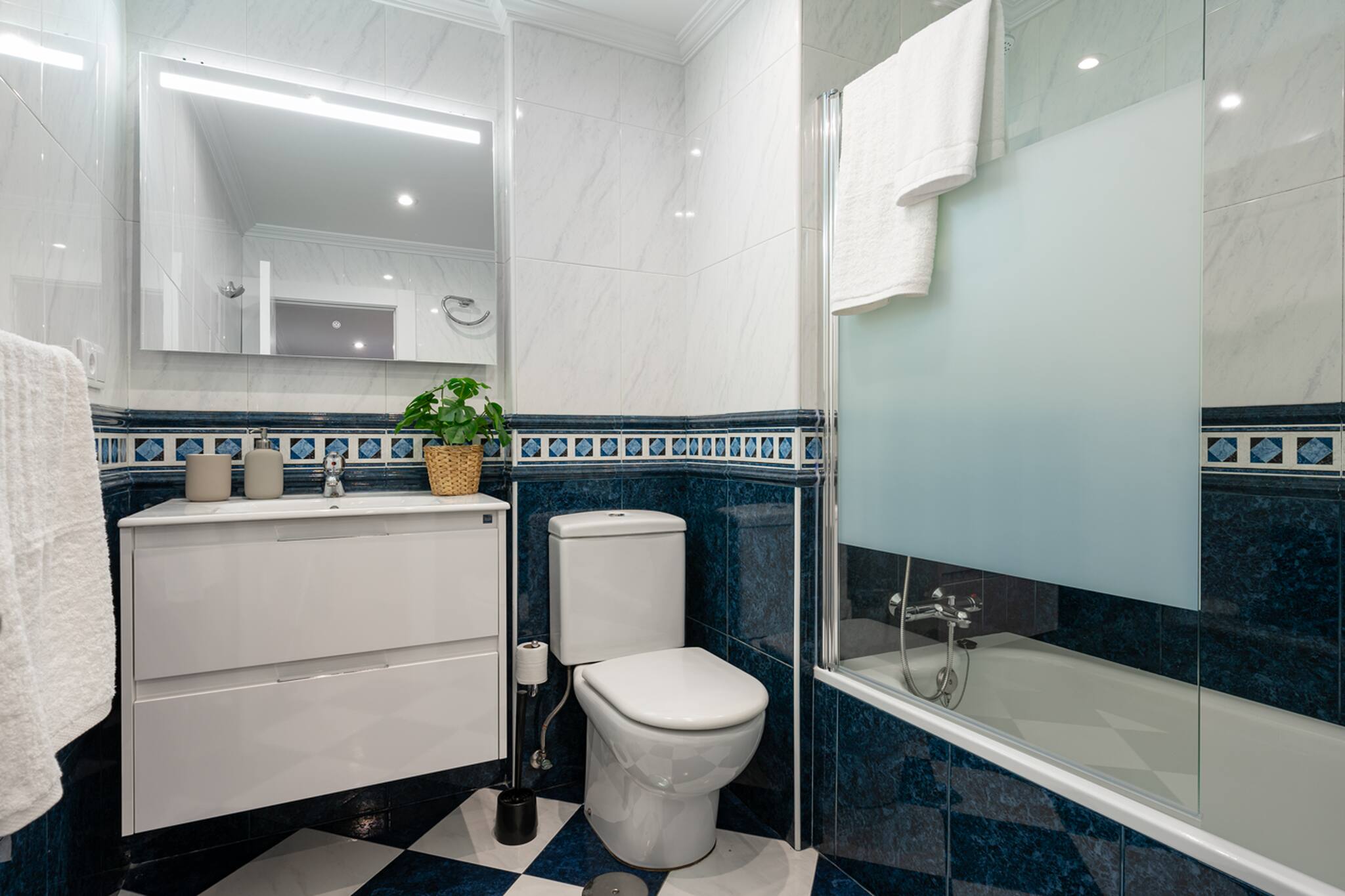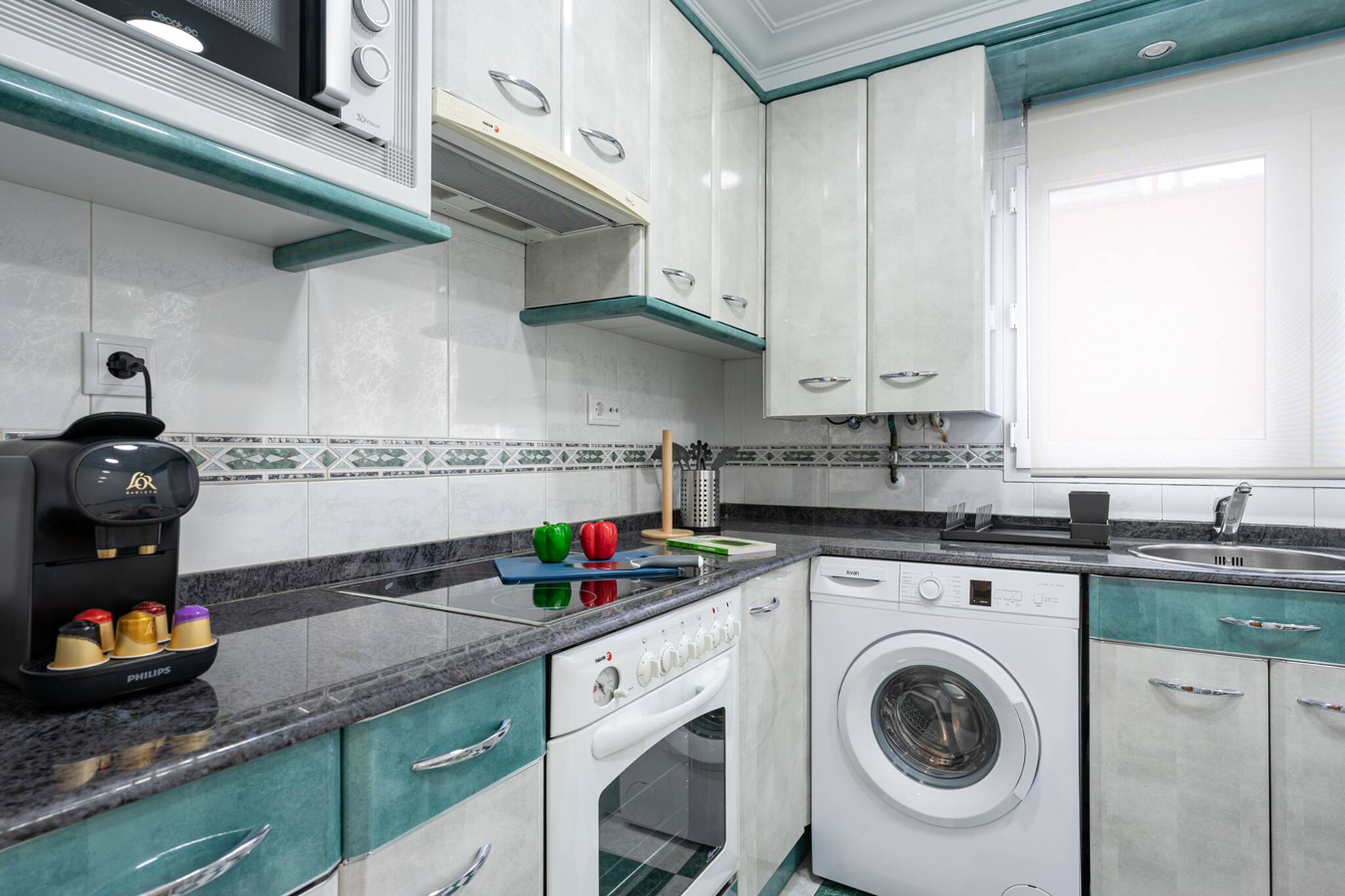 Salón - cocina totalmente equipada, WIFI, smarTV... y 2 baños completos. Muy amplio y espacioso, estupendo para 5 personas.