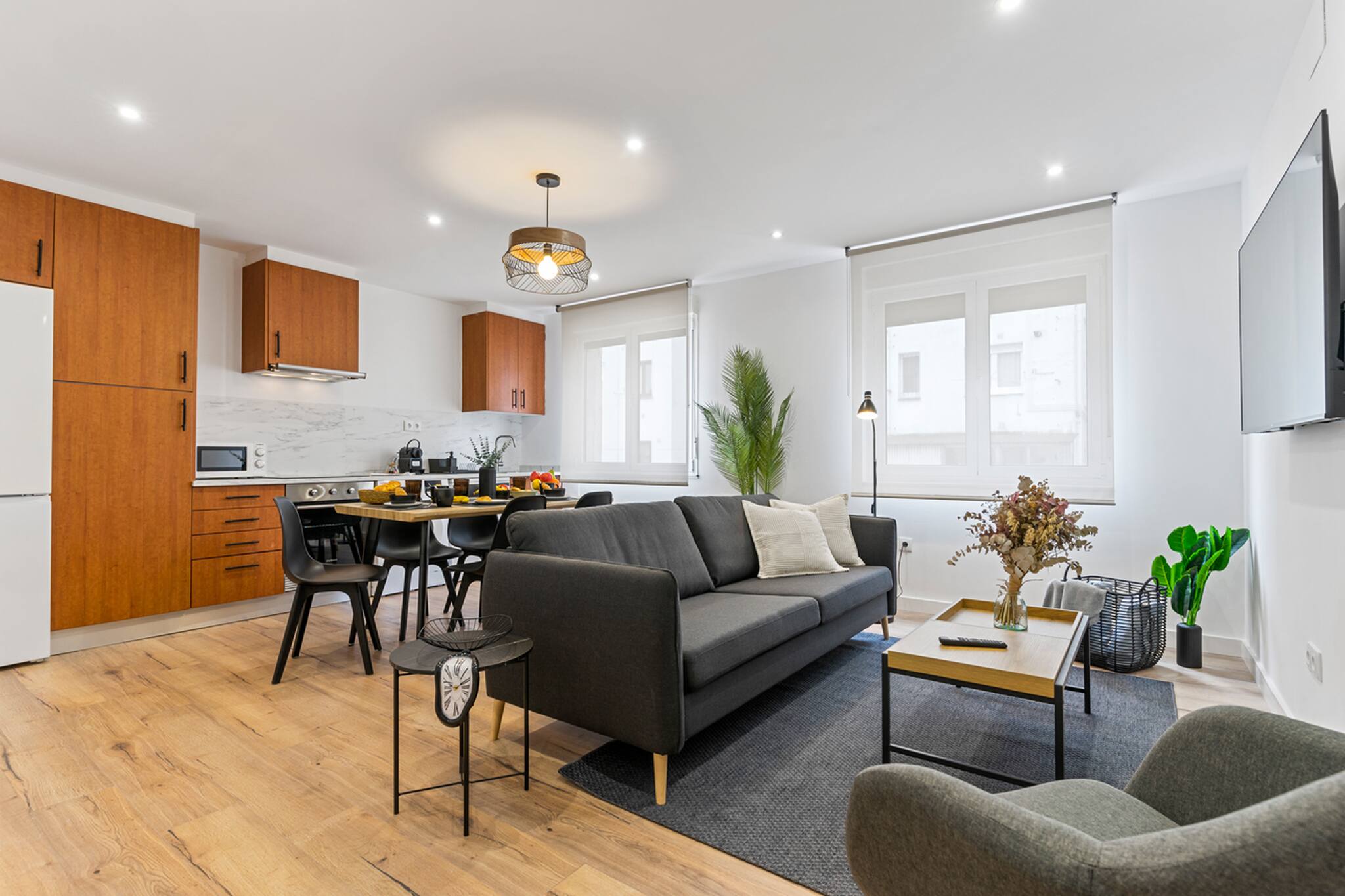Salón - cocina totalmente equipada, WIFI, smarTV... y 2 baños completos. Muy amplio y espacioso, estupendo para 5 personas.