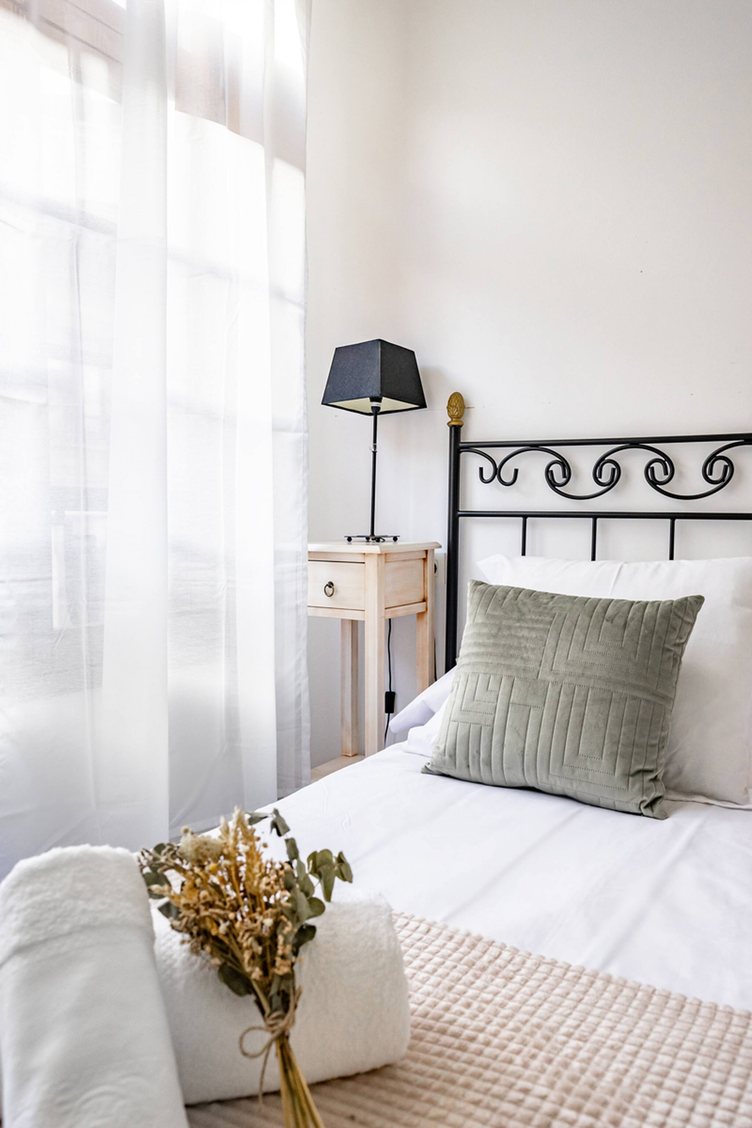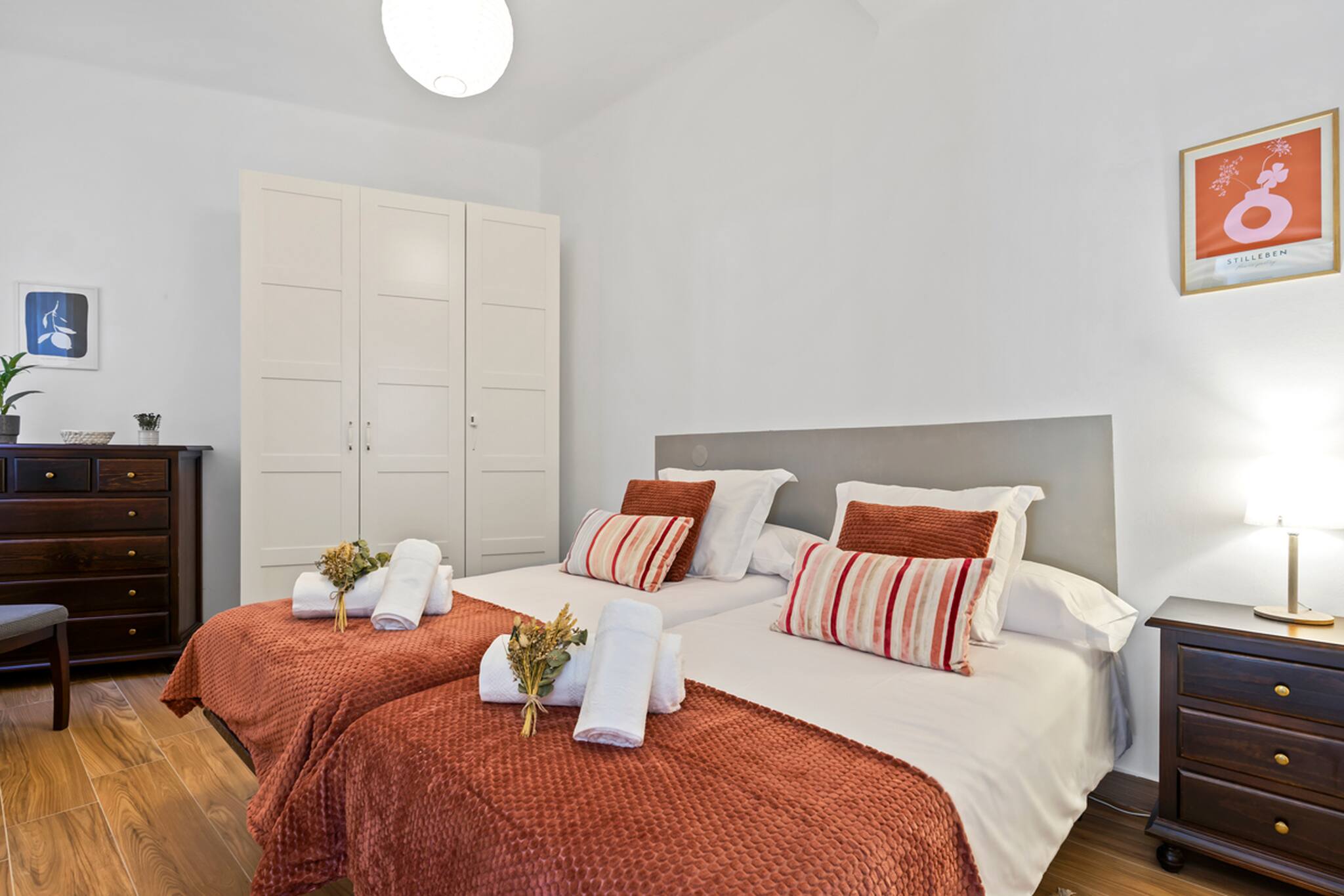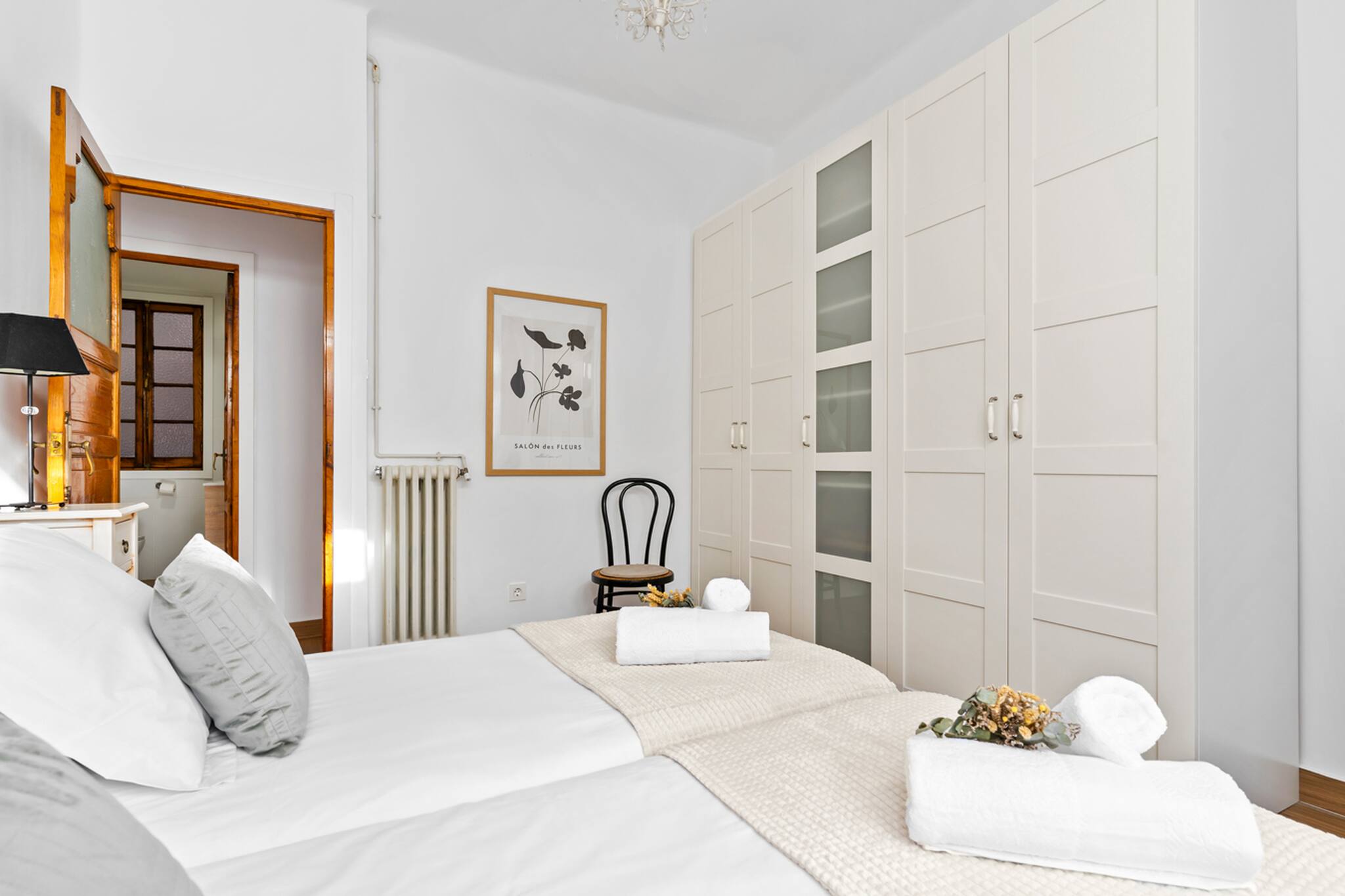 Apartamento grande y espacioso, con dos dormitorios con cama matrimonial y una habitación con despacho ideal para trabajar.