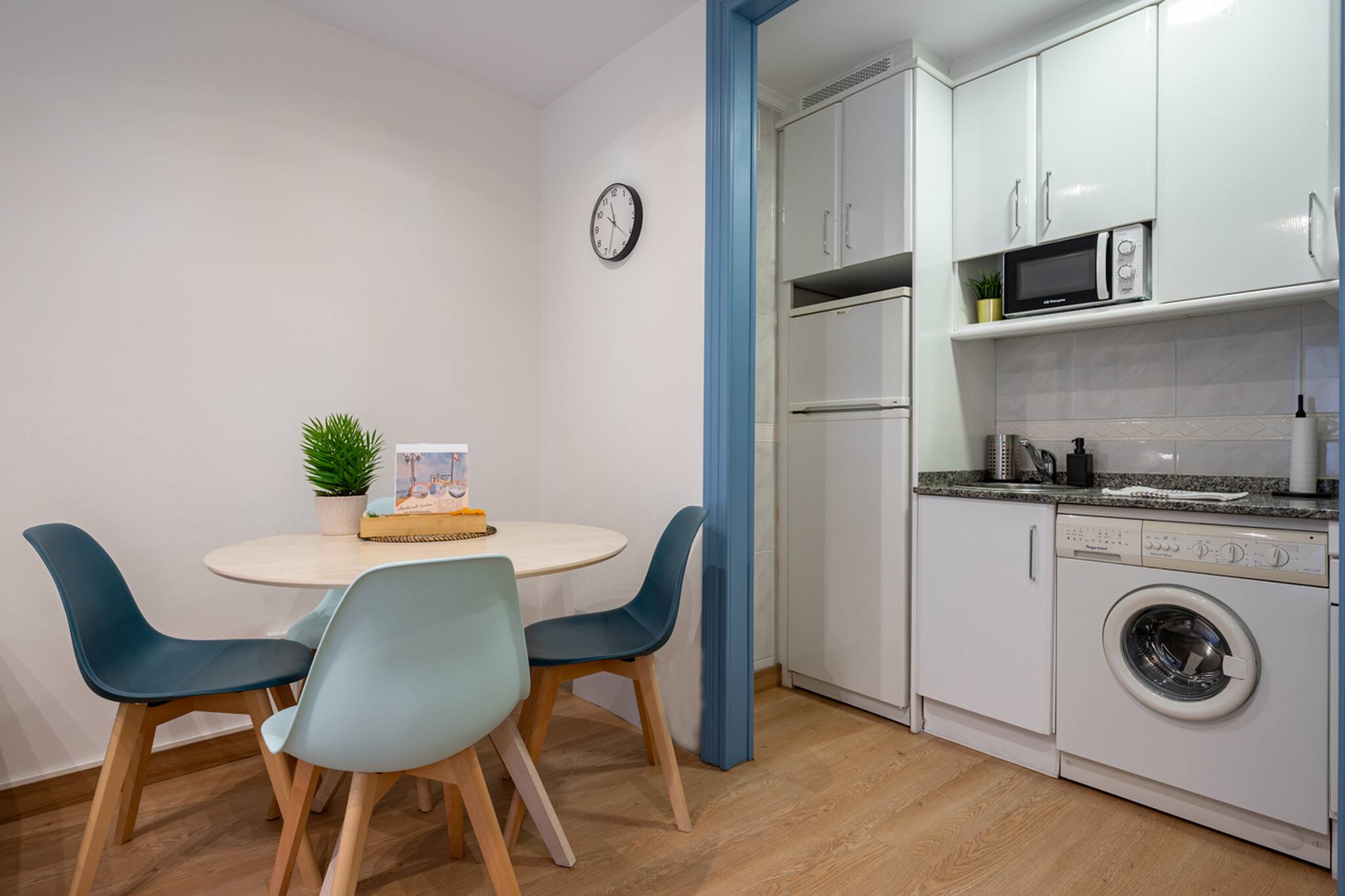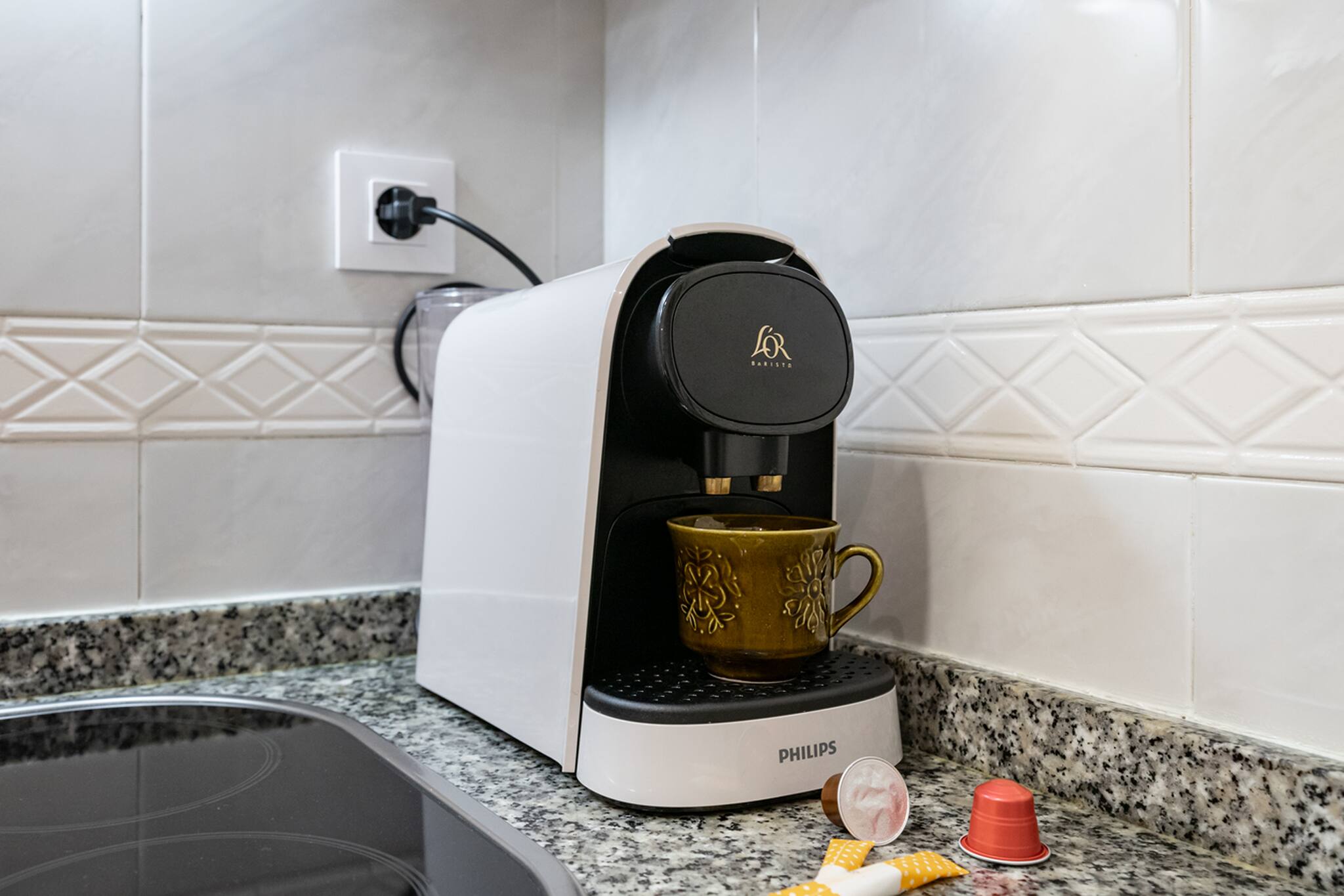 La opción perfecta para sentirte como en casa durante tu estancia. Cuenta con un dormitorio con dos camas unidas para hacer una amplia cama de 1,80 para favorecer el descanso y el confort. Salón - cocina totalmente equipada con menaje, cafetera de cápsulas... baño con plato de ducha, WIFI y parking en el mismo edificio.