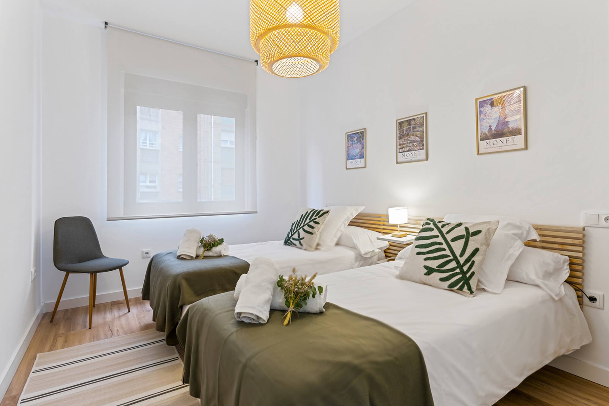 Apartamento Monet, la opción perfecta para familias con niños en tu visita a Gijón! La distribución del apartamento es de 3 dormitorios, uno de ellos con cuna y trona para bebés. Dos baños (uno con plato de ducha y otro con bañera). Salón y cocina totalmente equipada, WIFI, 2 smart TV y un amplio patio de uso exclusivo para huéspedes.