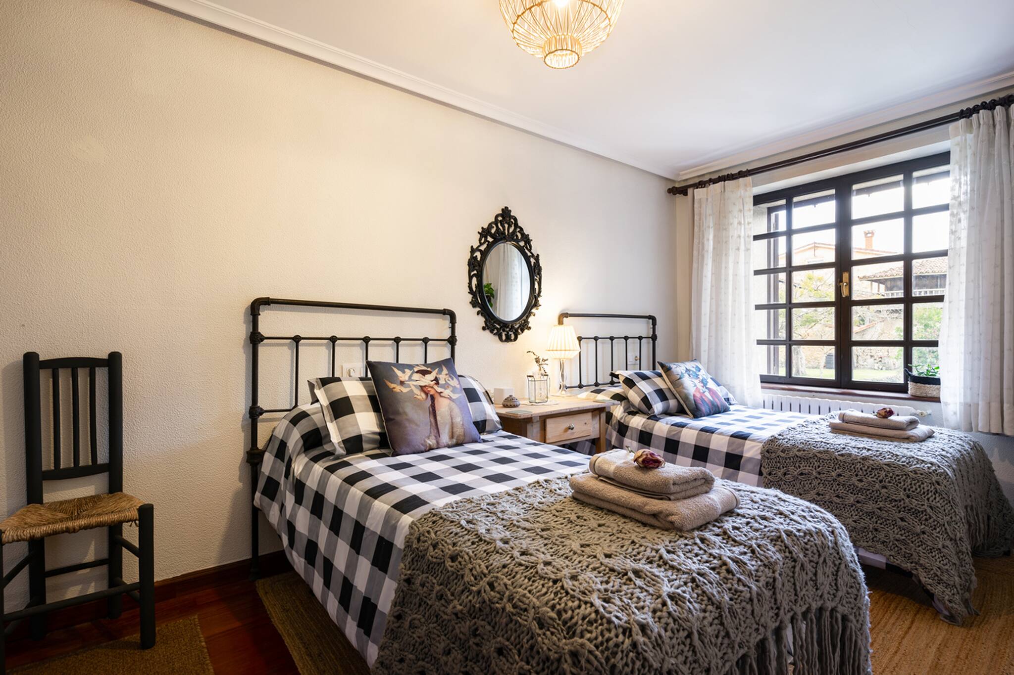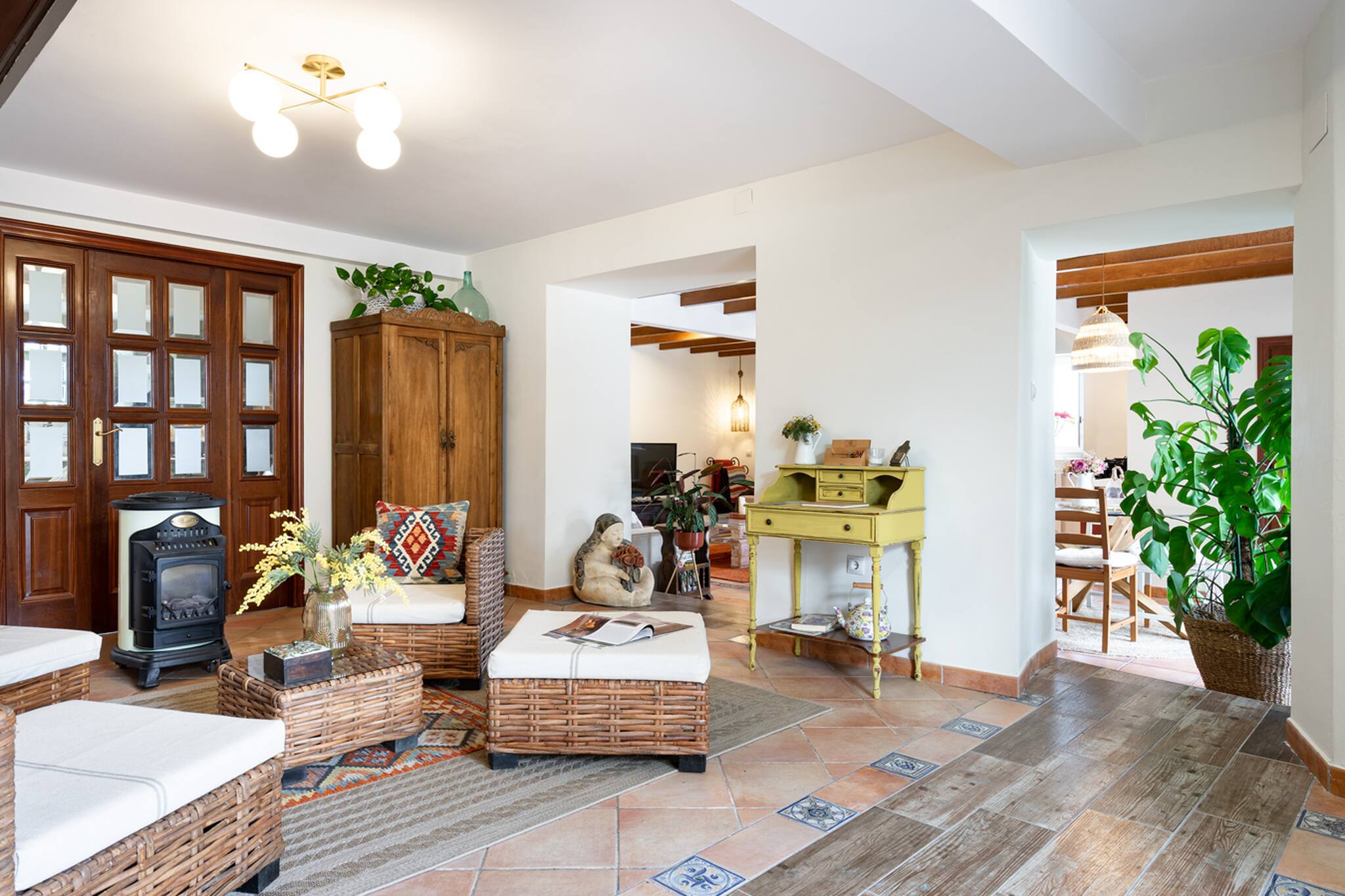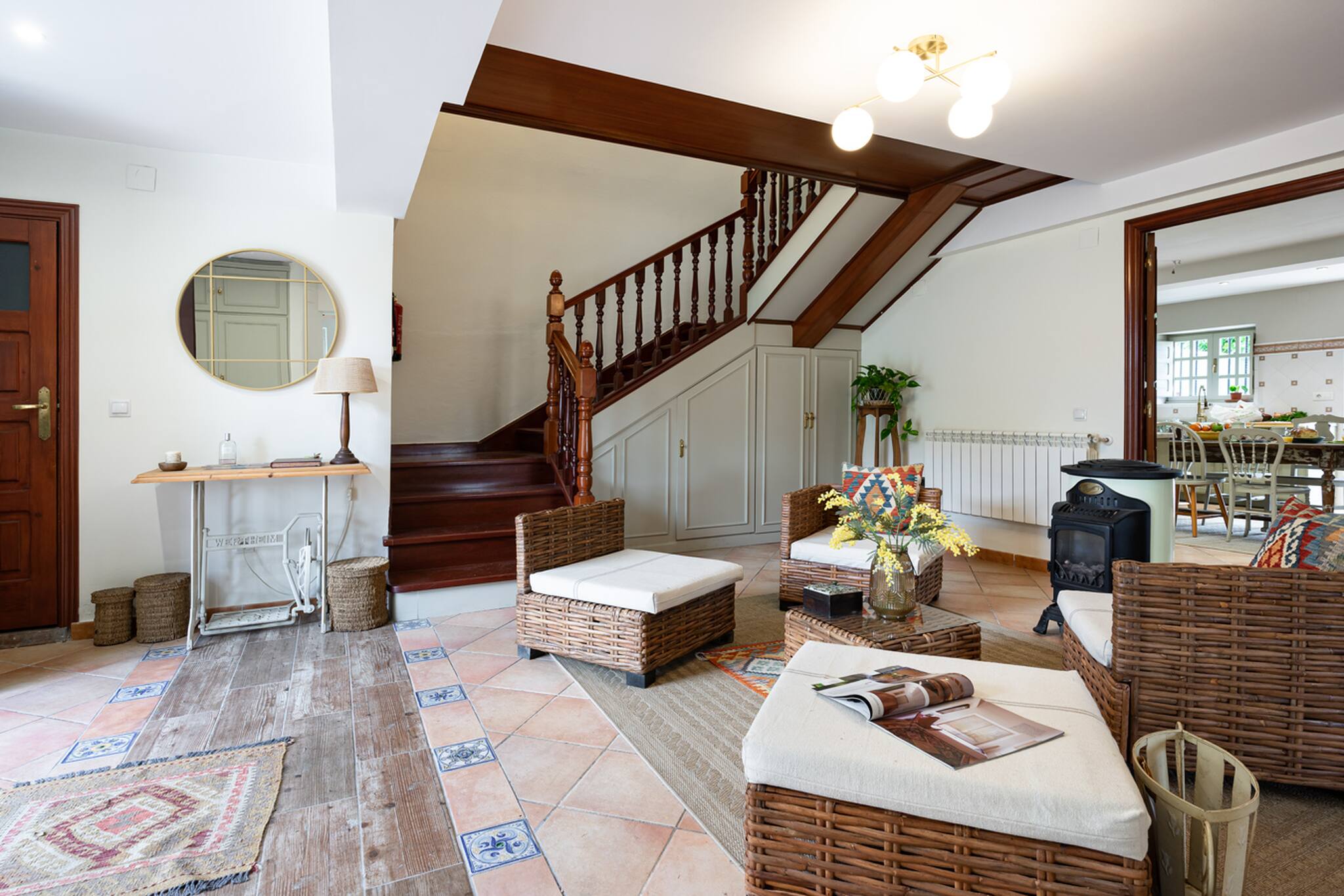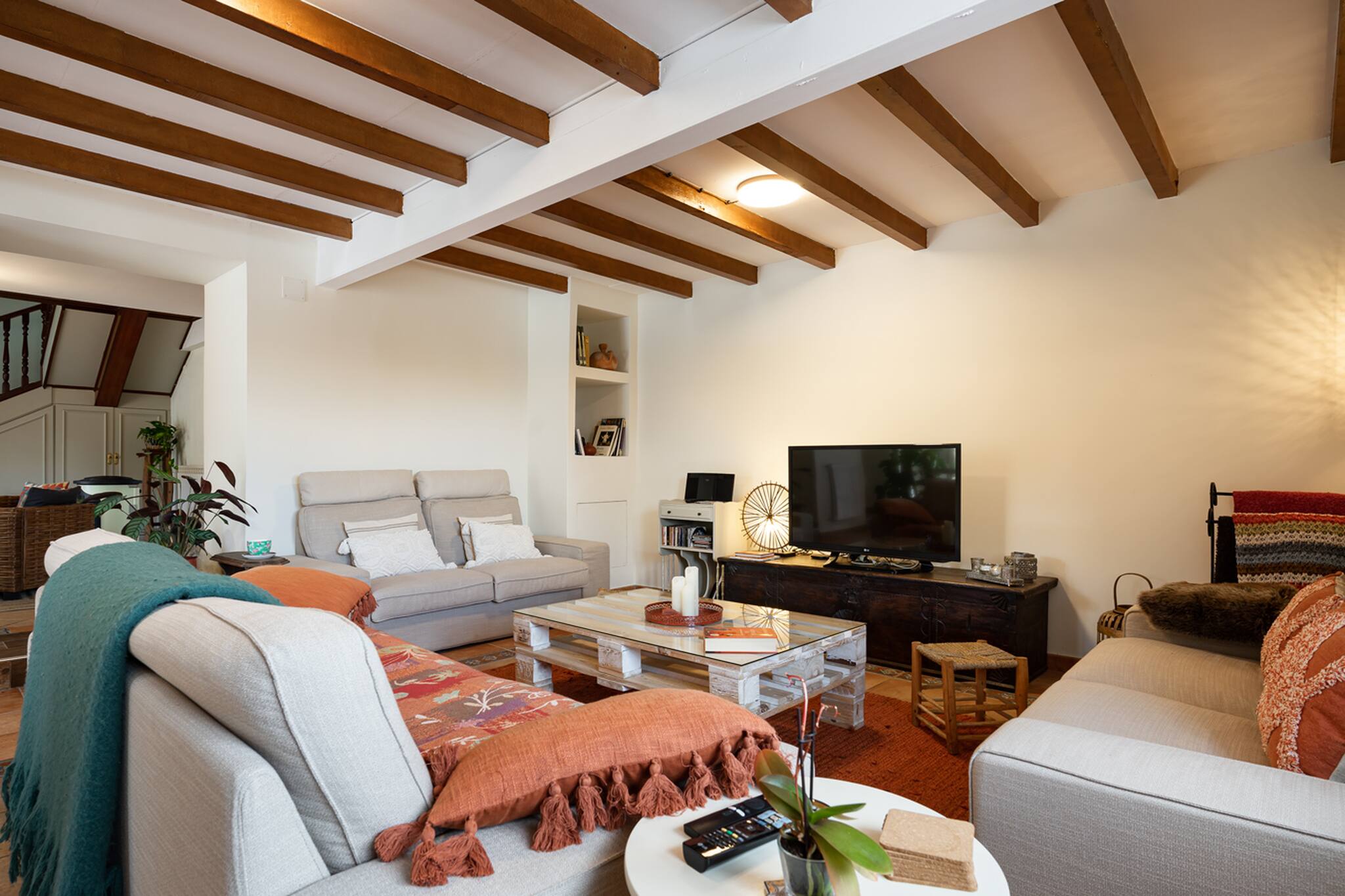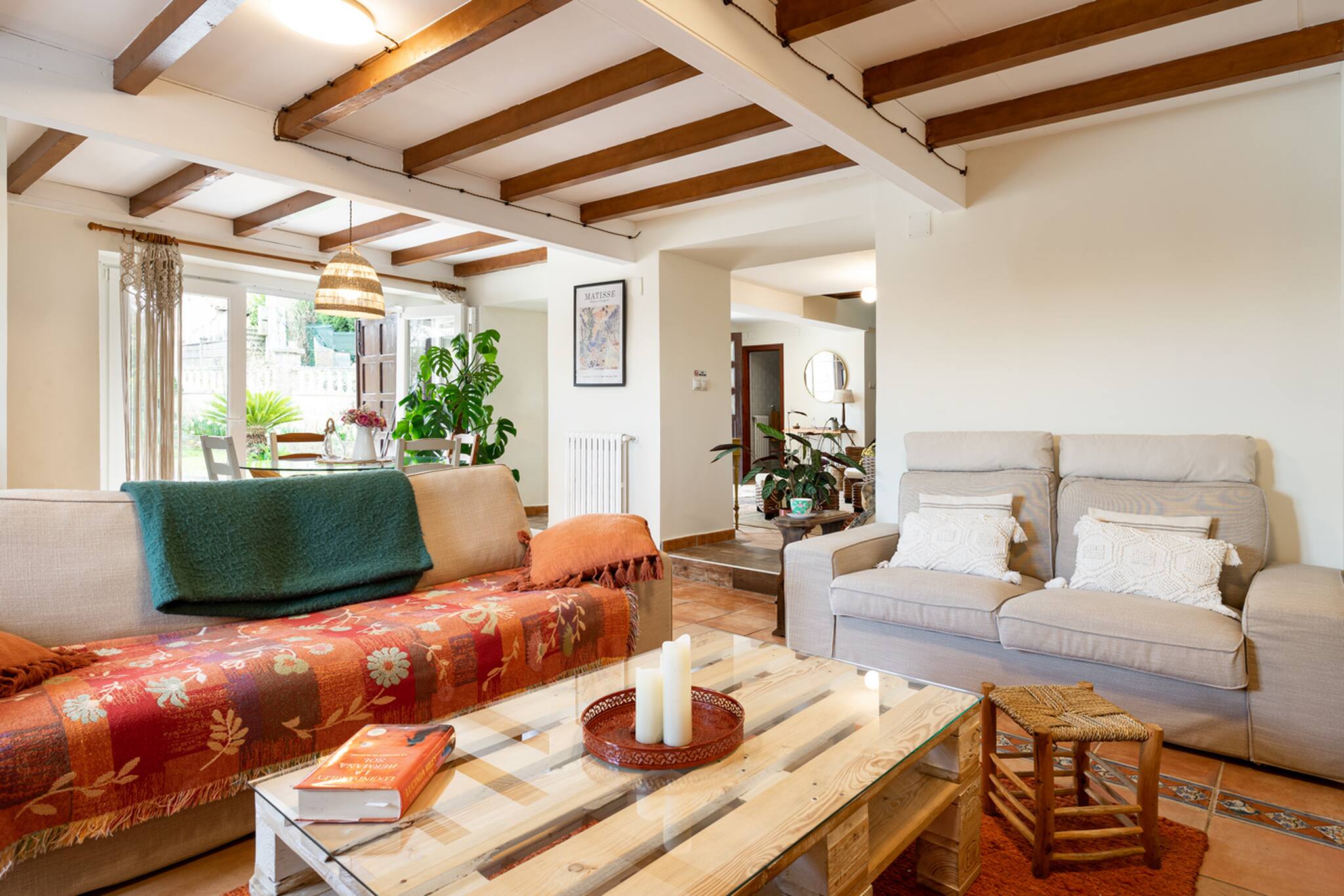 Decorada con mucho mimo, para poder acoger a nuestros huéspedes y que se sientan como en casa disfrutando de todas las estancias... 6 habitaciones, 3 baños, salón, comedor, cocina, zona de descanso, terrazas, cocina exterior, sala de juegos, jardín...