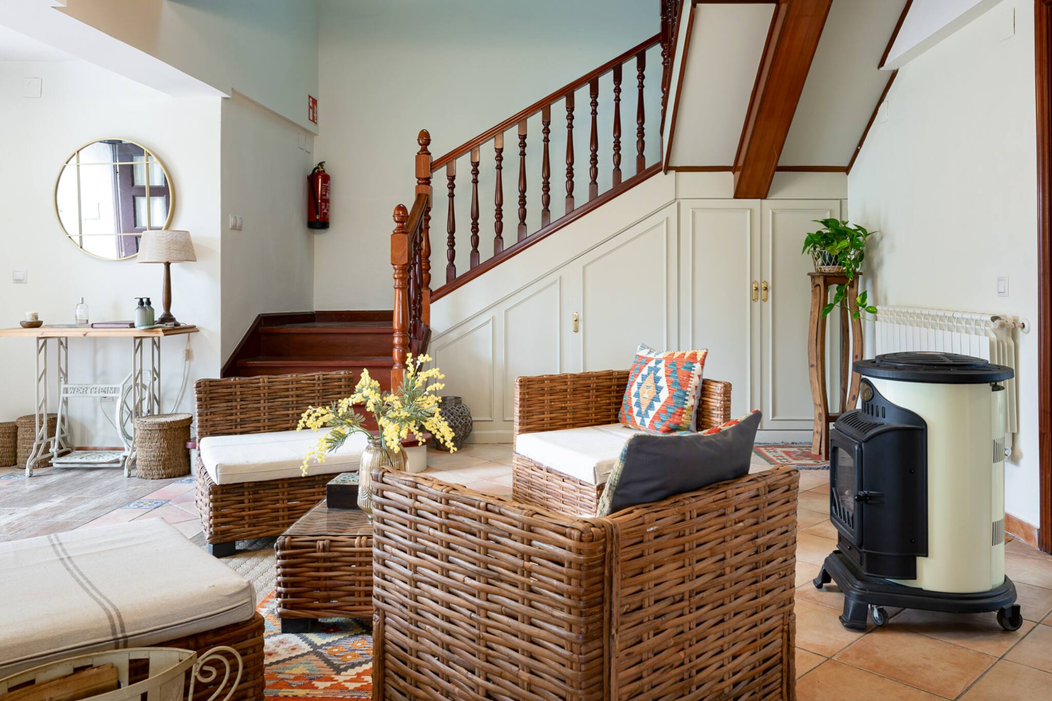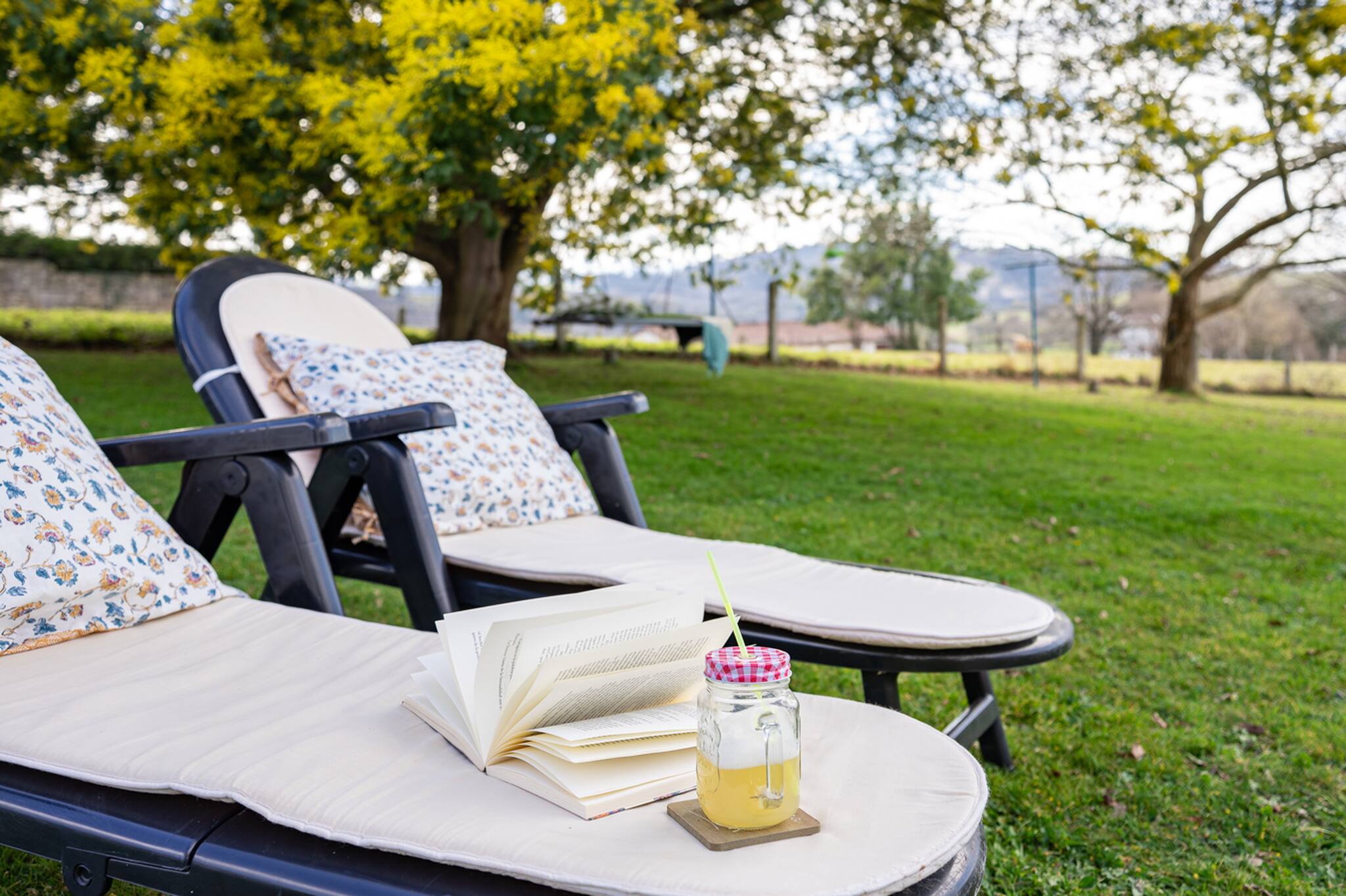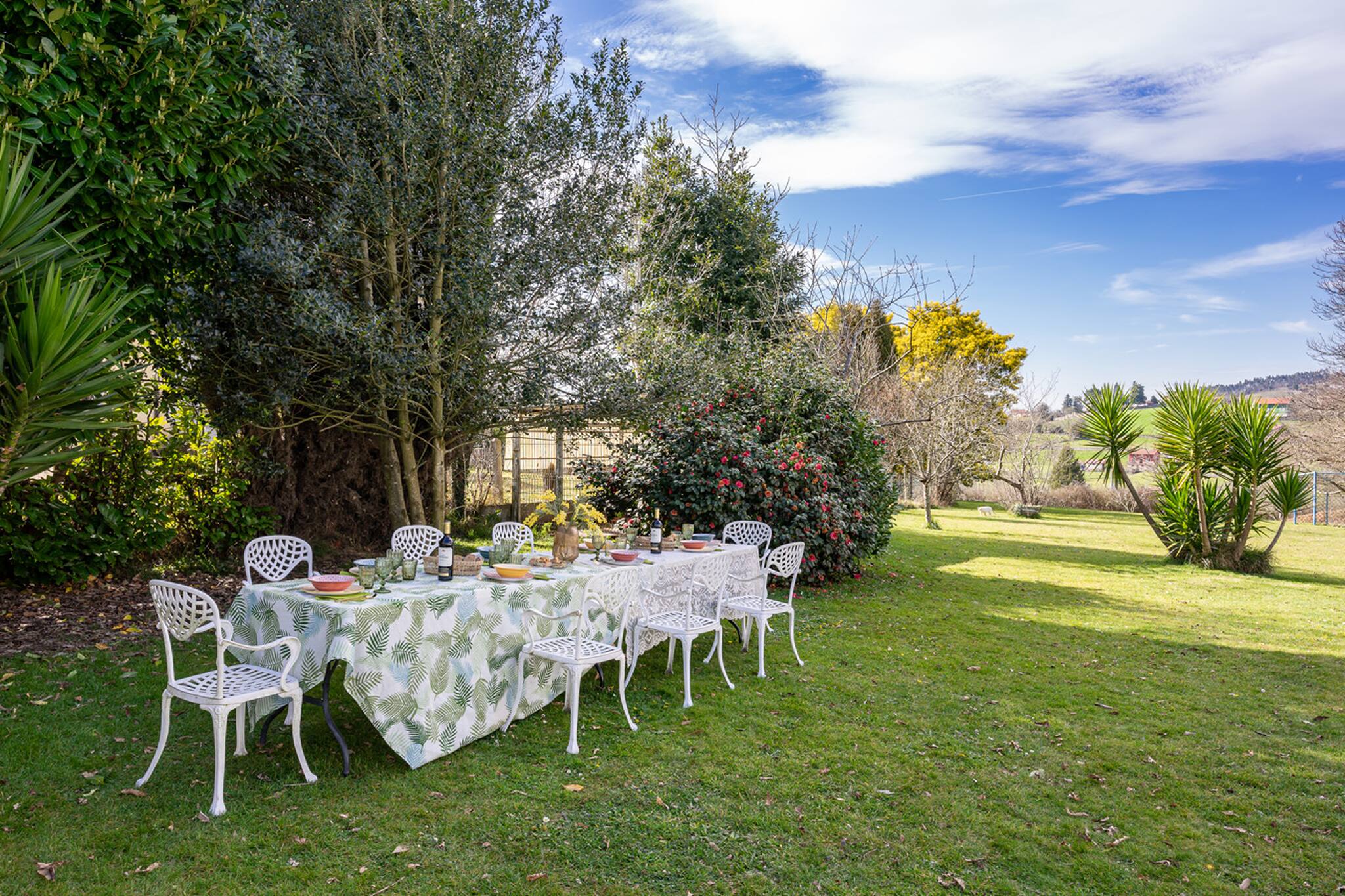 Villa Mimosa es un casa a todo detalle, decorada con mucho mimo y pensando en todo momento en nuestros huéspedes, aquellos que se alojen en Mimosa se sentirán como en casa. Nos gusta la gente respetuosa y responsable que cuida de las cosas igual que lo hacemos nosotros, si tienes la oportunidad de descubrir esta casa... seguro que vuelves!! La casa tiene 6 habitaciones, 3 de ellas con cama matrimonial, otras dos con cama individual y otra con dos camitas. Salón en la planta baja y en la planta superior. Una cocina de ensueño con terraza y vistas al jardín y una segunda cocinita auxiliar perfecta para las comidas en el exterior. Un paraíso para los niños (y los no tan niños) es la sala de juegos; con mesa de ping - pong, juegos de mesa, trivial, parchís, pelotas, peluches... Descubre el encanto de Villa Mimosa y no te pierdas un atardecer desde el columpio.. Te esperamos!