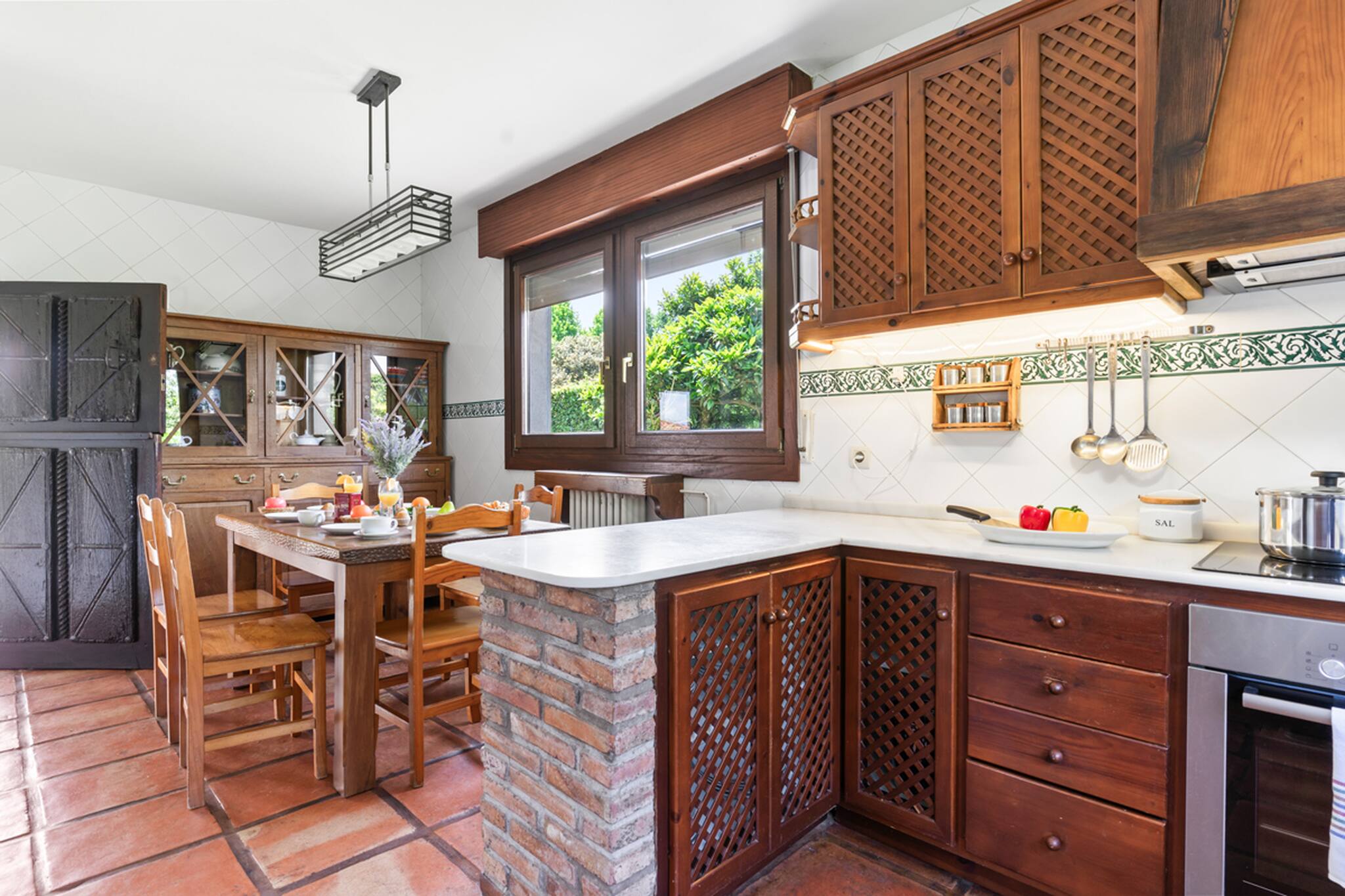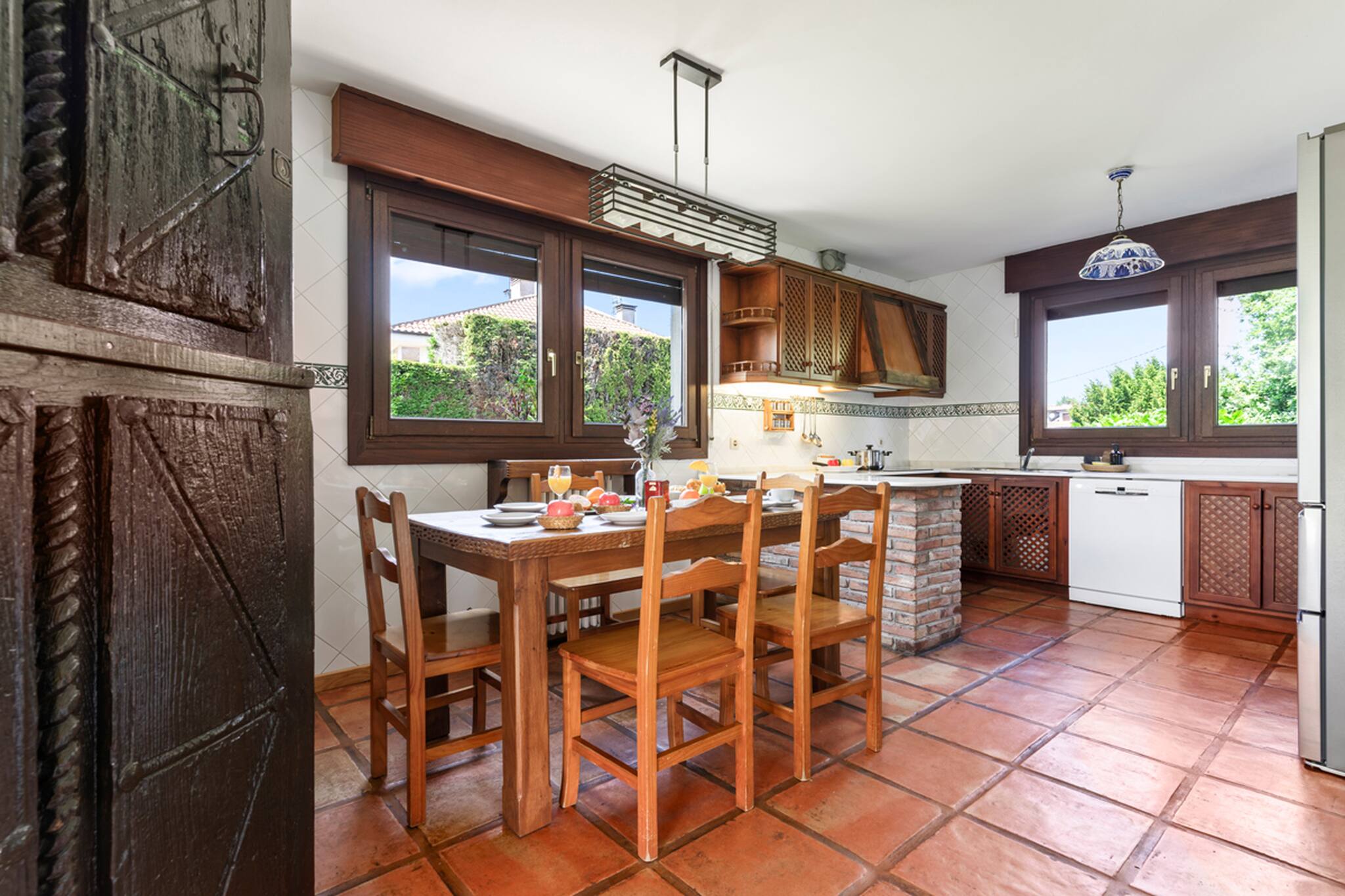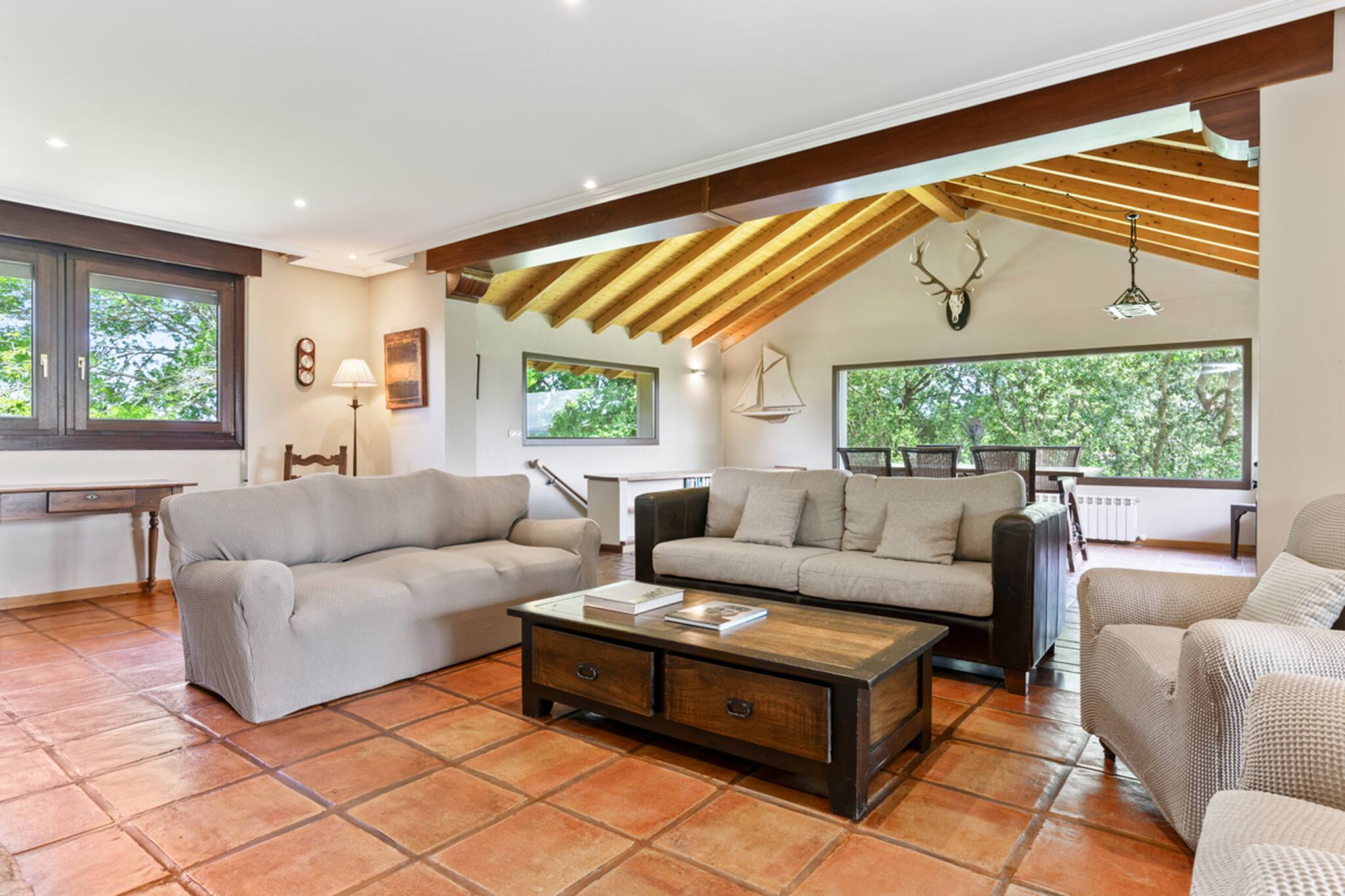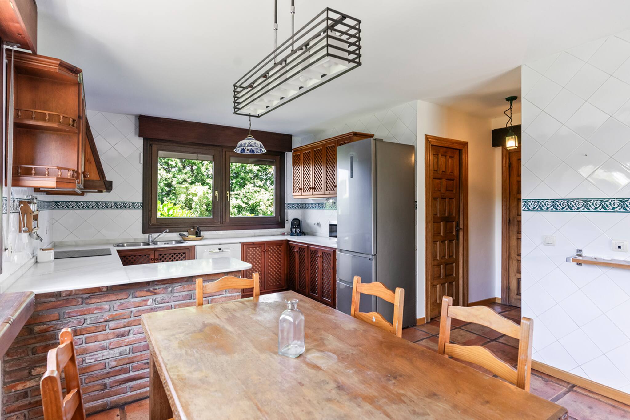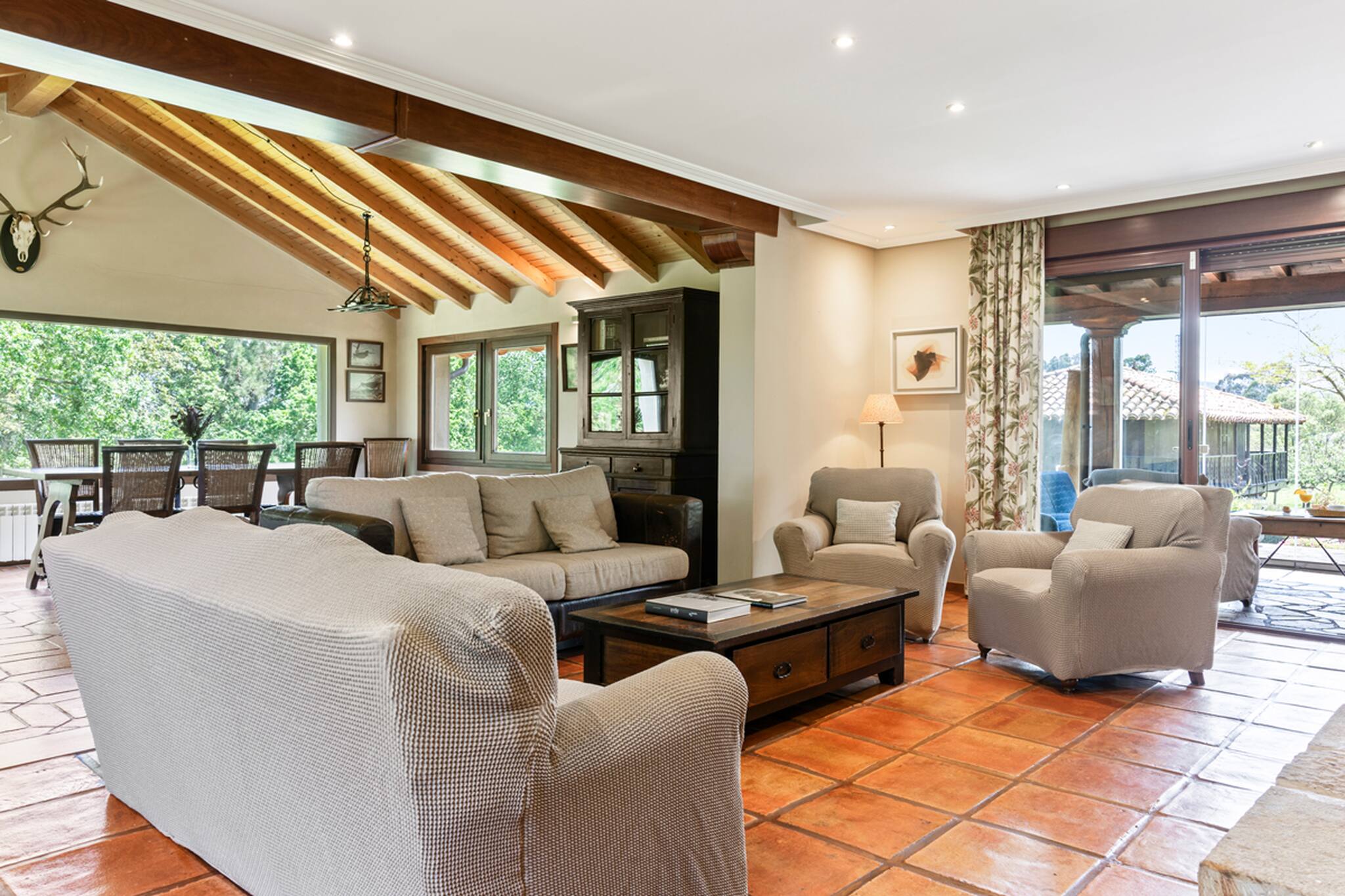 La casa cuenta con 4 amplios dormitorios dobles, uno de ellos con baño en suite, además de otros 2 baños completos y un aseo para mayor comodidad. El gran salón-comedor ofrece un espacio acogedor para compartir momentos inolvidables, y se conecta con una impresionante galería acristalada con vistas directas al jardín y a la piscina.